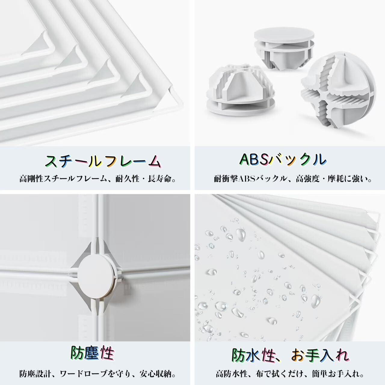 【数量限定】大容量 ワードローブクローゼット 1個30cm*40㎝ 収納容量33%アップ 衣類収納 整理棚 収納ボックス ドア付き カラーボックス ぬいぐるみ収納 洋服整理 防カビ樹脂製 鋼鉄フレーム 組み立て式 耐荷重設計 耐久性 (白・扉付き, 12box(30cm*40cm))