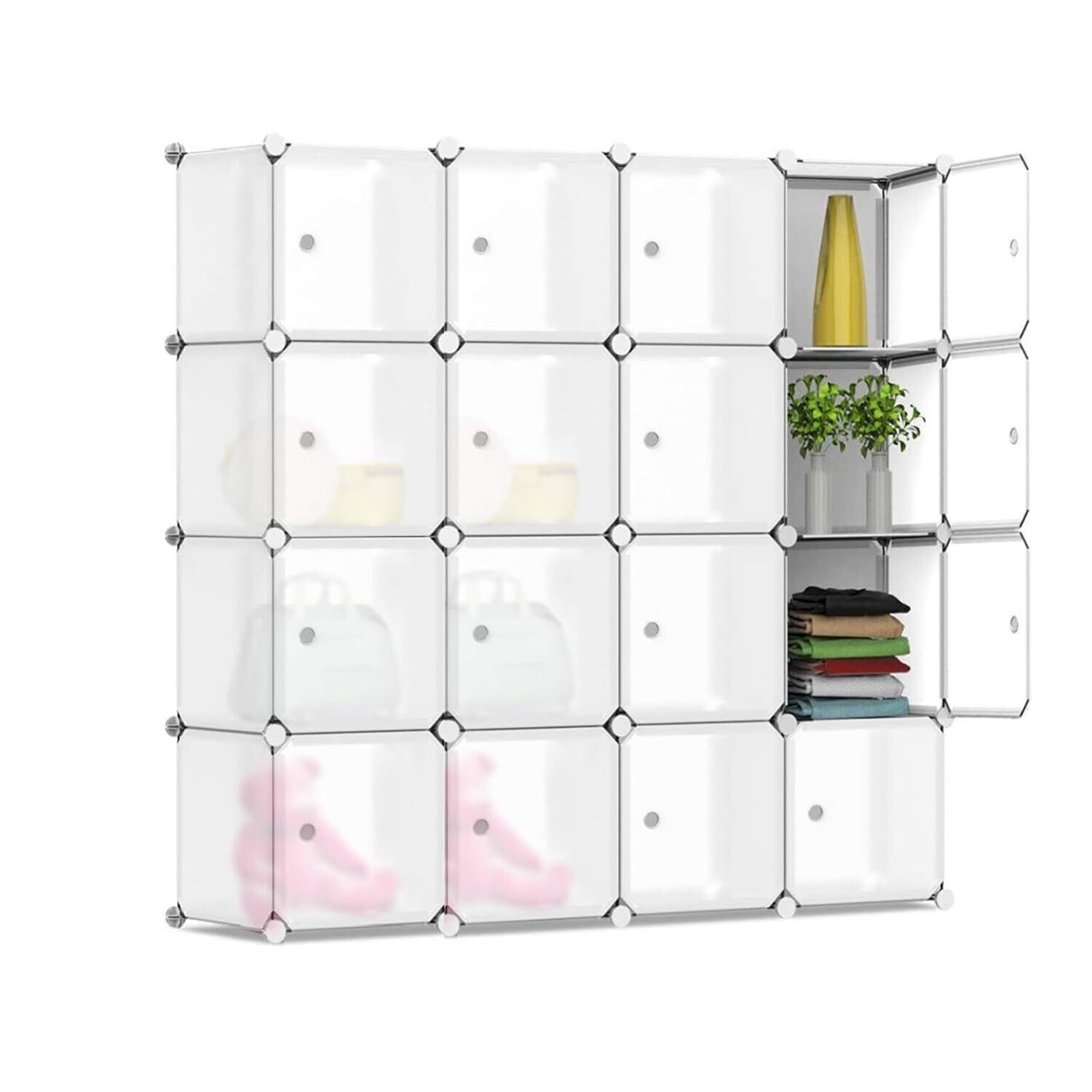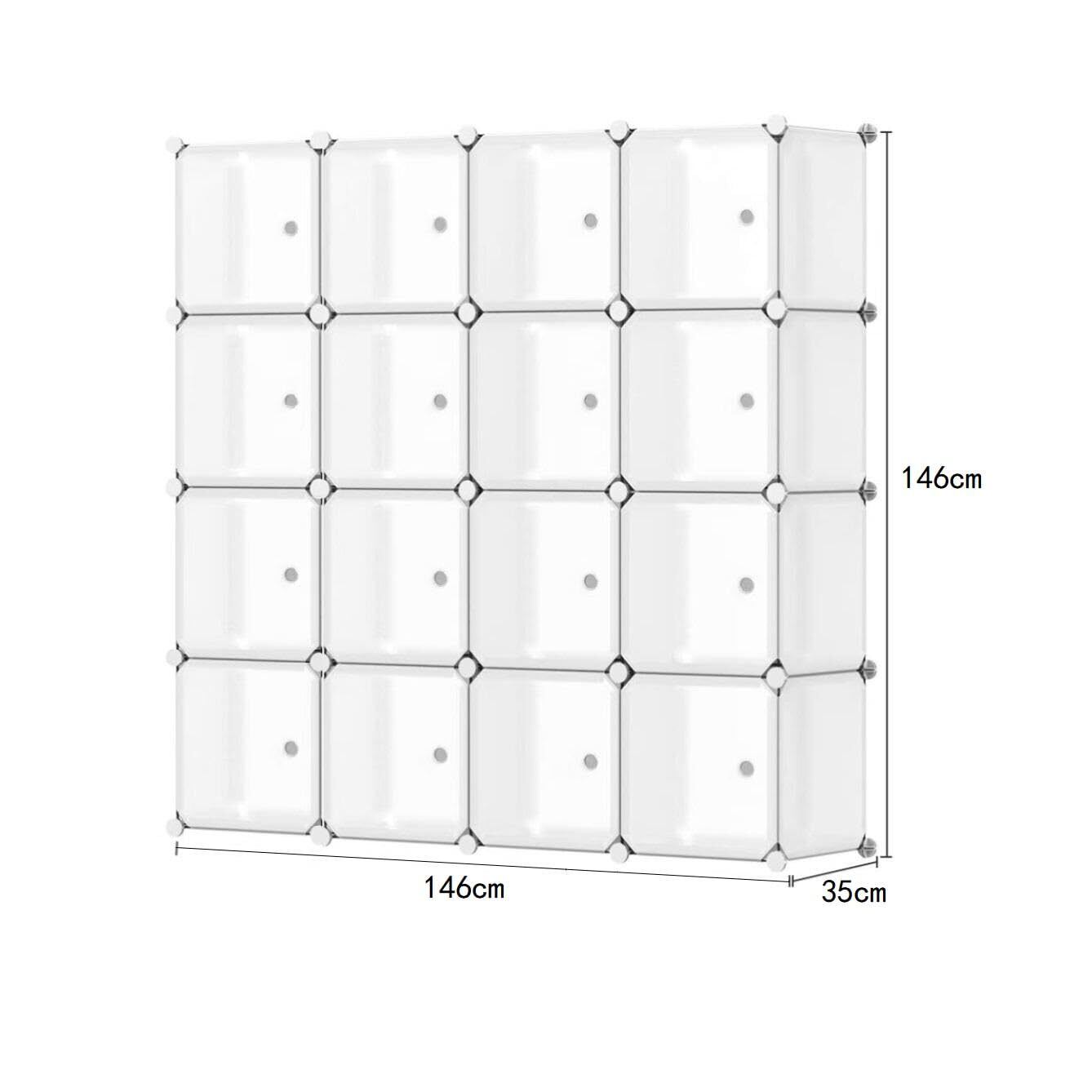 ワードローブ 組み立て式 クローゼット 衣類収納ボックス 大容量16ボックス 半透明ドア付き 防カビ樹脂製 鋼鉄フレーム 耐荷重設計 耐久性 (白 16BOX)