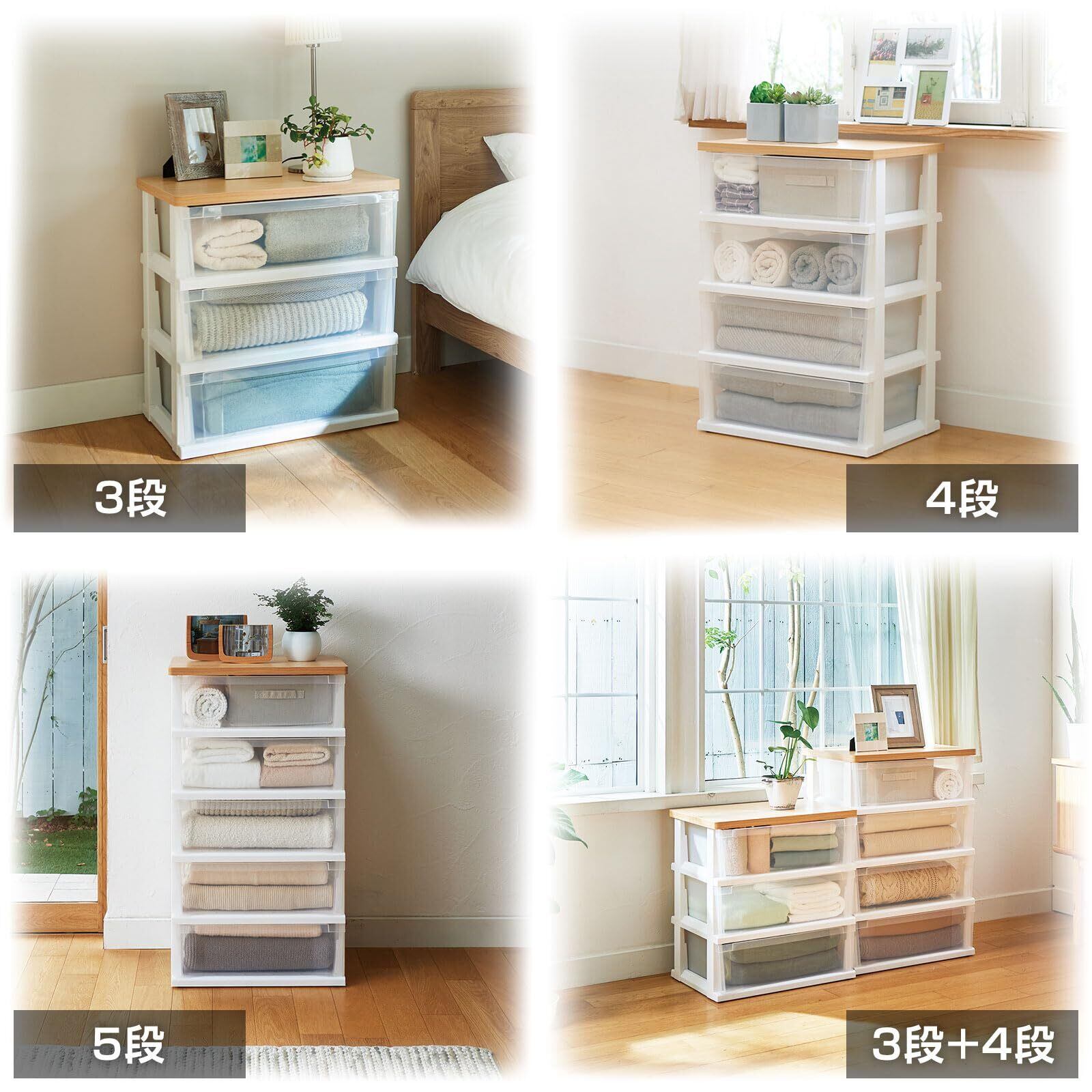 天馬(Tenma) お部屋に馴染む木製天板付きの衣装ケース 日本製 簡単組立 木製天板ストッカー3段 簡易キャスター付きで移動がラクラクなチェスト 収納ケース 引き出し【簡単組立】【幅55×奥行40×高さ60cm】