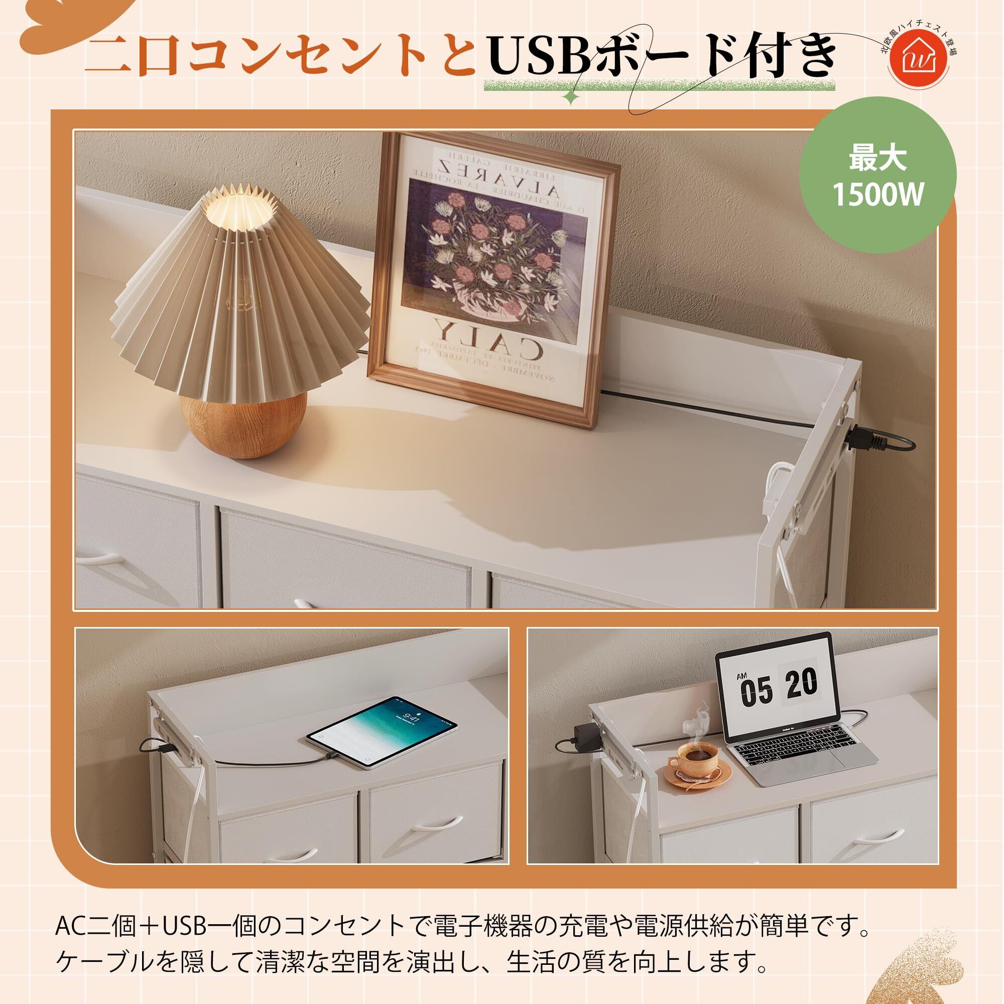 USBコンセント付き: ファブリーズチェストは、使いやすいUSBポート(一つ単体と一つ二口)を標準装備しています。これにより、スマートフォンやタブレット、ランプなどのデバイスを手軽に充電できます。あなたの日常のライフスタイルに合わせて、さまざまな電子機器を利用可能とし、生活の便利性を向上させます。