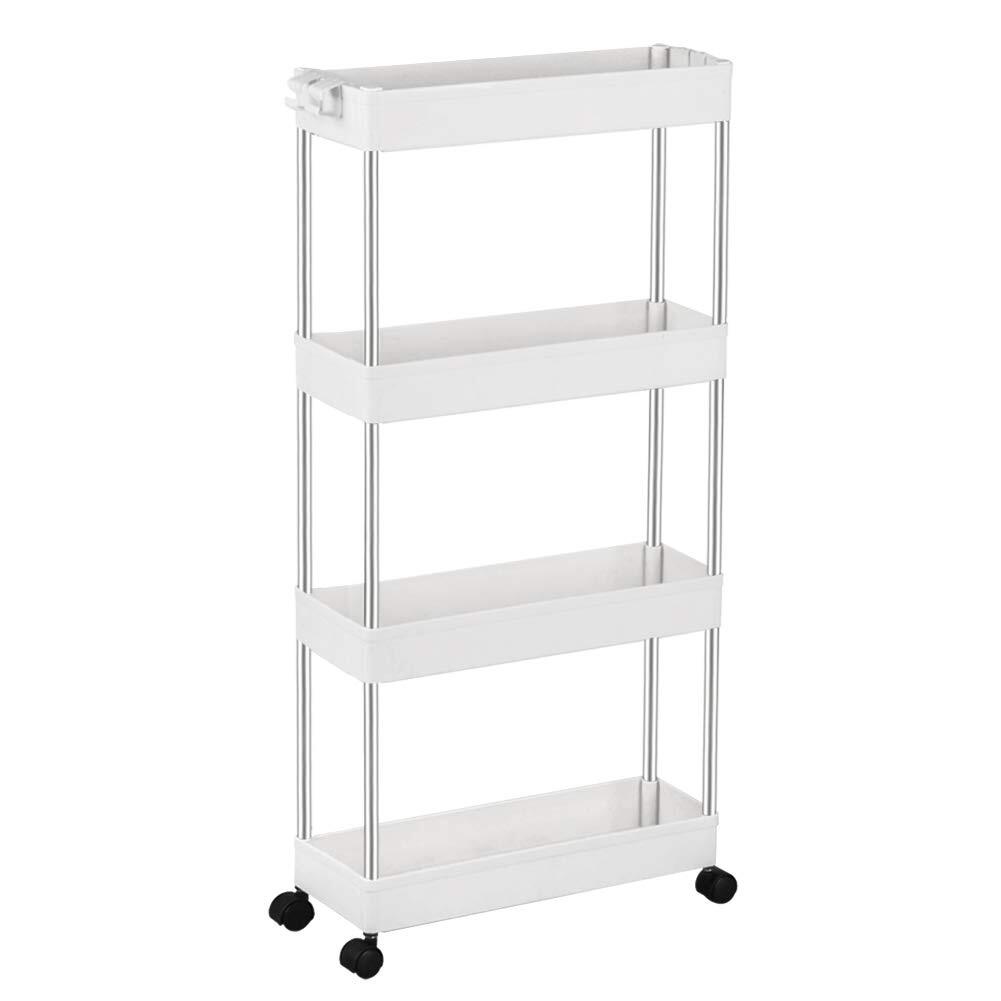 SPACEKEEPER キッチンワゴン スリム 隙間収納 13cm 収納ラック キャスター付き 収納カート ローリングラック おしゃれ 調味料 食品 ペットボトル 小物 台所 洗面所 冷蔵庫横 4段 ホワイト