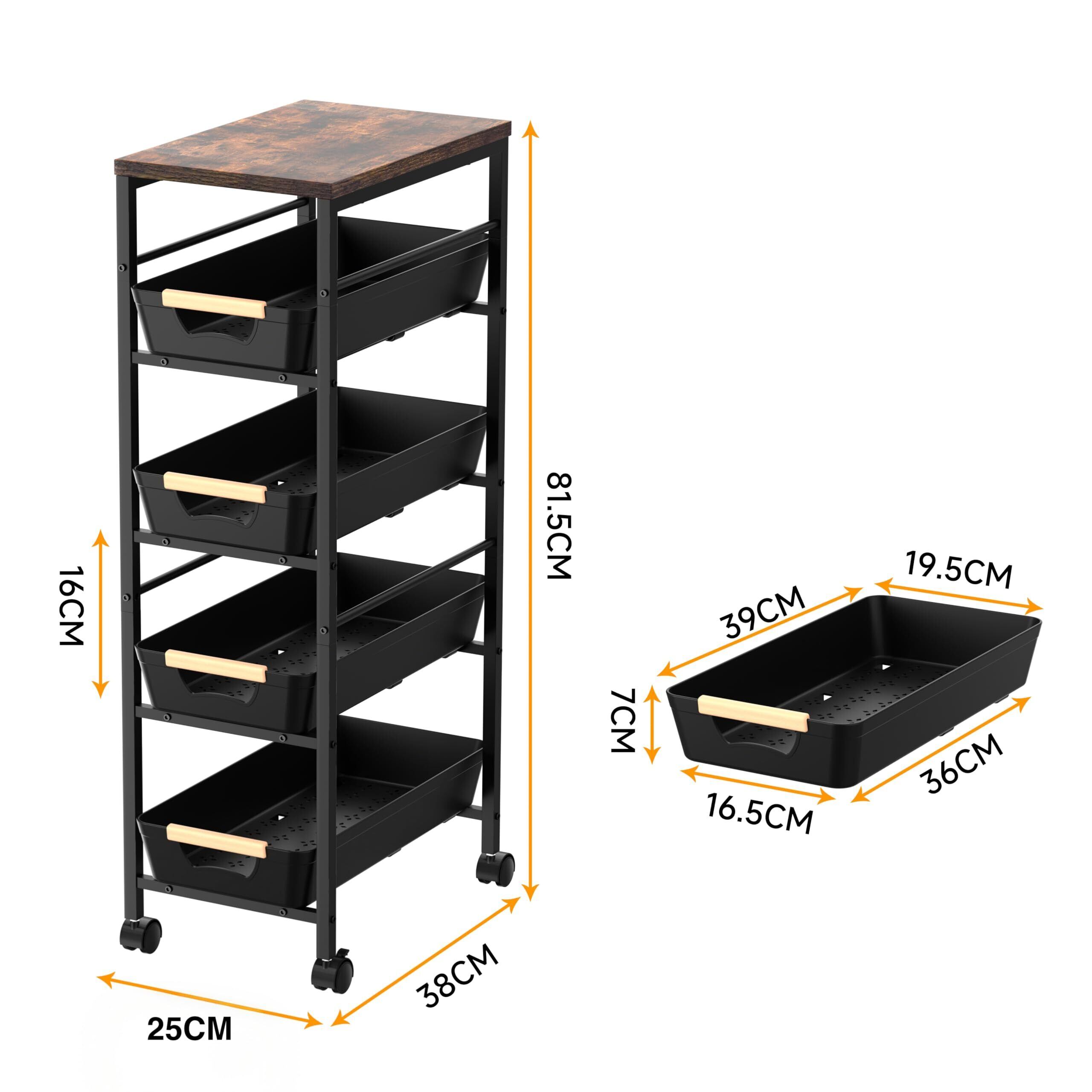 SVOHZAV キッチンワゴン スライド式 幅20/25/32cm 天板付き 隙間収納 スリムワゴン キャスター付き キッチン 高さ81cm 洗面所 収納ラック 調味料棚 ラック 洗濯機横 冷蔵庫横収納 ランドリーワゴン 棚 スリムラック (ブラック,外寸幅25cm−5段)