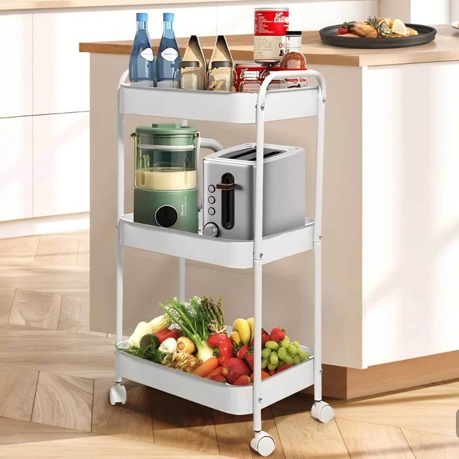 【新着商品】キッチンワゴン キャスター付き キッチンラック 【オール合金構造】スリムワゴン 小物隙間収納 ペットボトルラック 冷蔵庫横 洗面所 収納 隙間ラック 3段(白色3層)