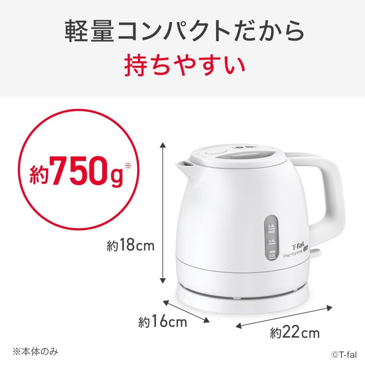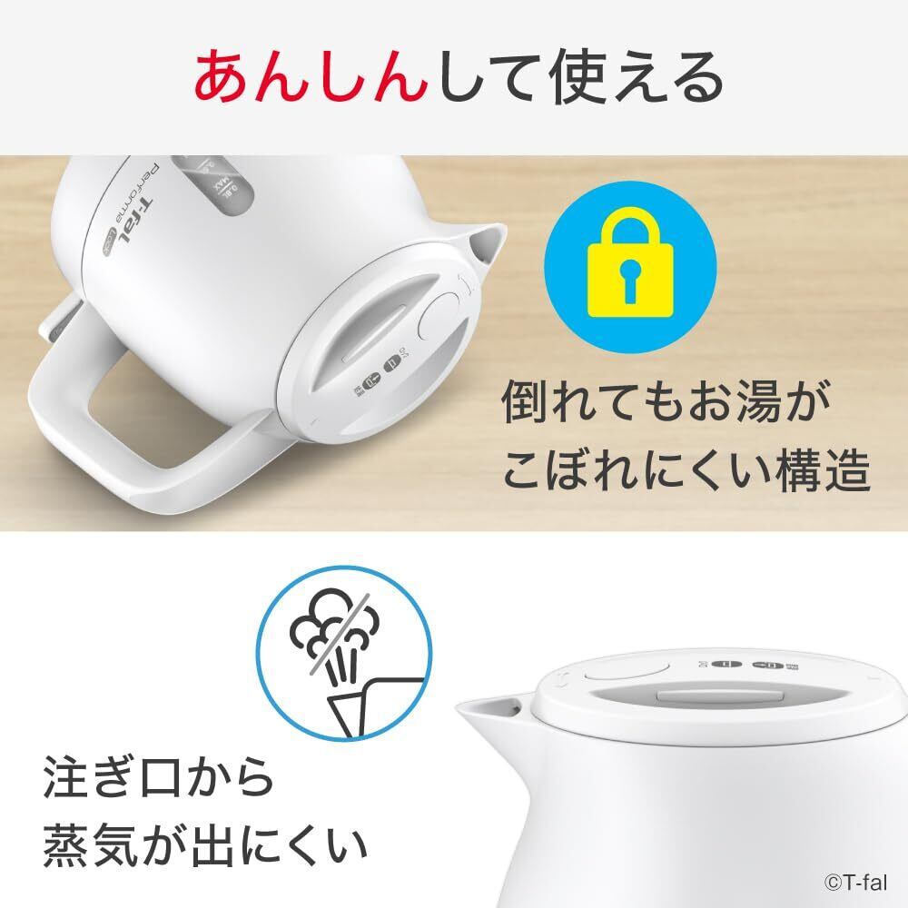 【オンライン限定】ティファール 電気ケトル 0.8L シンプル 転倒お湯もれロック 省スチーム設計 「パフォーマ ロック ホワイト」 軽量コンパクト KO1611JP