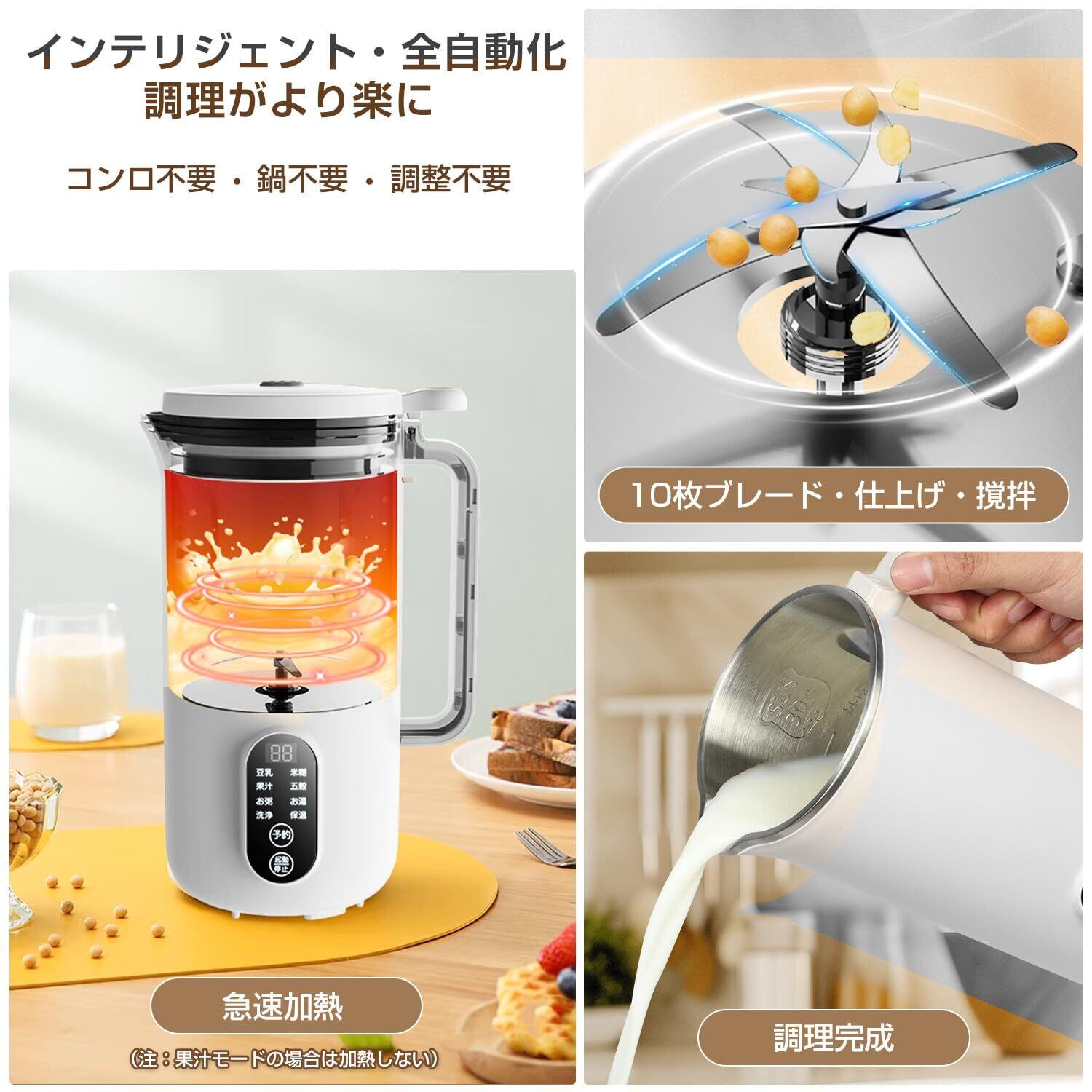 自動洗浄機能を搭載しており、面倒なお手入れも簡単に行えます。304ステンレス製の10枚刃が高速で食材を攪拌し、なめらかな仕上がりを提供。豆乳だけでなく、健康的なスムージーや離乳食、さらにはハーブティーまで多彩なメニューに対応可能です。