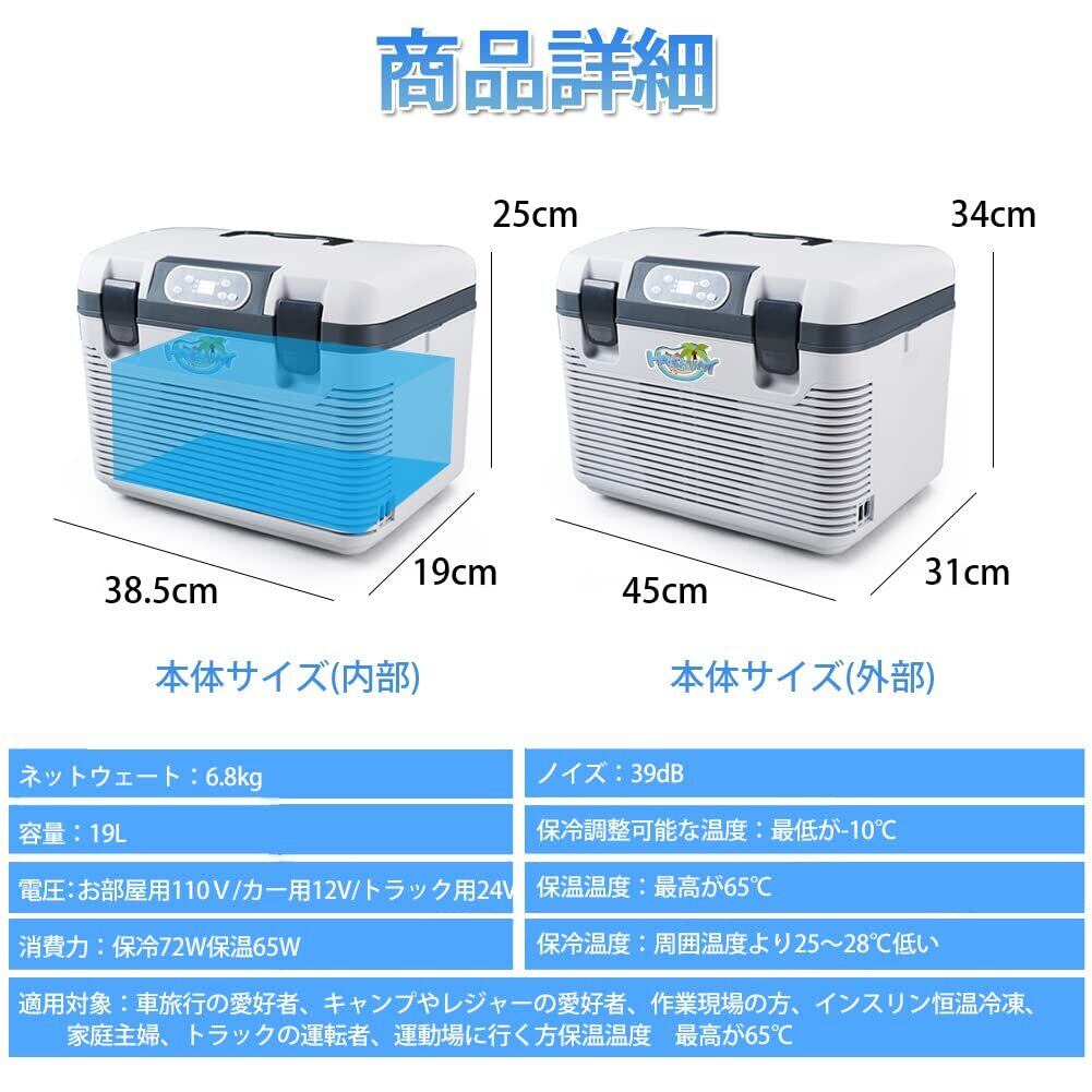 この19Lの冷蔵庫は、家庭用・車用どちらでも活躍する優れたアイテムです。家庭での使用はもちろん、キャンプやドライブでもあなたの飲み物や食料を理想的な温度で保てます。まさに便利なポータブル冷温庫です!