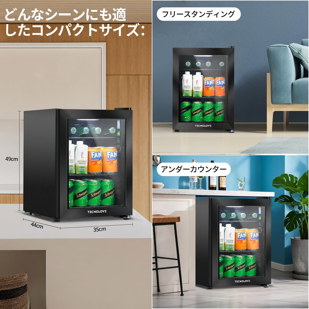 【多様なシーンに対応】コンパクトなデザインで場所を取らず、一人暮らしやサブ冷蔵庫として最適なアイテムです。ガラスドア付きの保冷庫は、静音設計により、家庭用はもちろん、寝室やゲーミングルーム、バー、寮、ホテル、カラオケ、レストラン、カフェ、書斎など、さまざまなシーンで活躍できます。必要なときに必要な場所で、手軽に冷たい飲み物をお楽しみいただけます。多機能でスタイリッシュなこの冷蔵庫は、ごライフスタイルを一層便利にします。