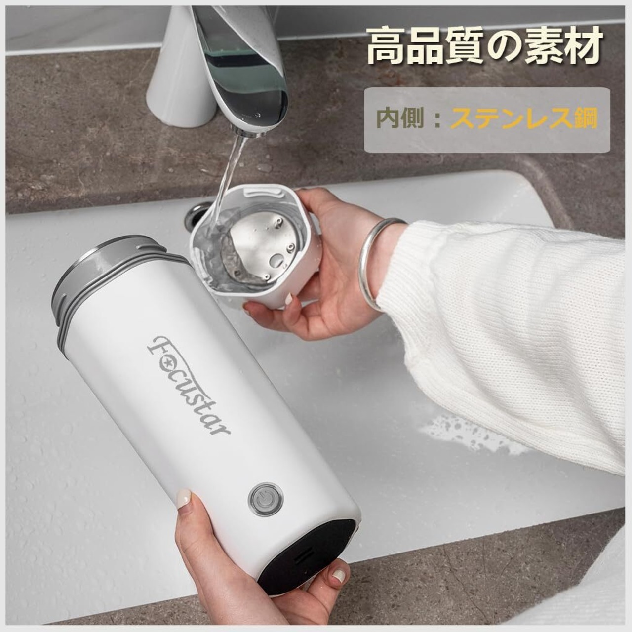 【耐久性高いポータブルケトル】Focustarポータプルケトルは内側に厚手の食品グレード304ステンレス鋼を採用します。サビにくく清潔な状態をキープできるため、赤ちゃんのミルク作りにも安心。耐熱・耐衝撃性に優れ、長期間の使用が可能です。