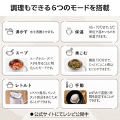 エレコムのクックマグは、沸かす、煮込む、保温など6つのモードが搭載されています。スープからレトルト食品まで、多彩な料理を手軽に楽しむことができ、日常の食卓を華やかに演出します。