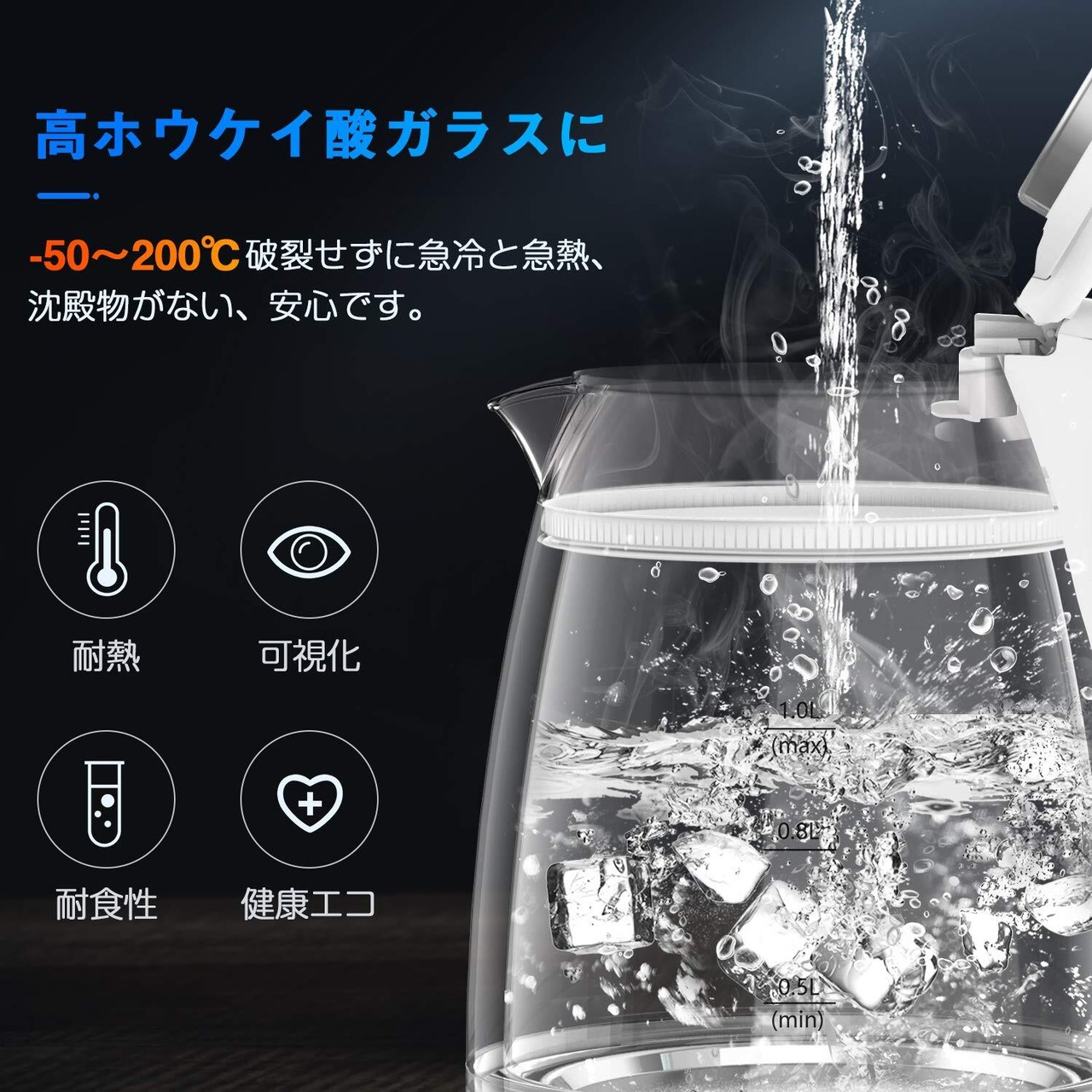 \新着商品!HAGOOGI 電気ケトル ガラス 1.0L LEDライト付き!/