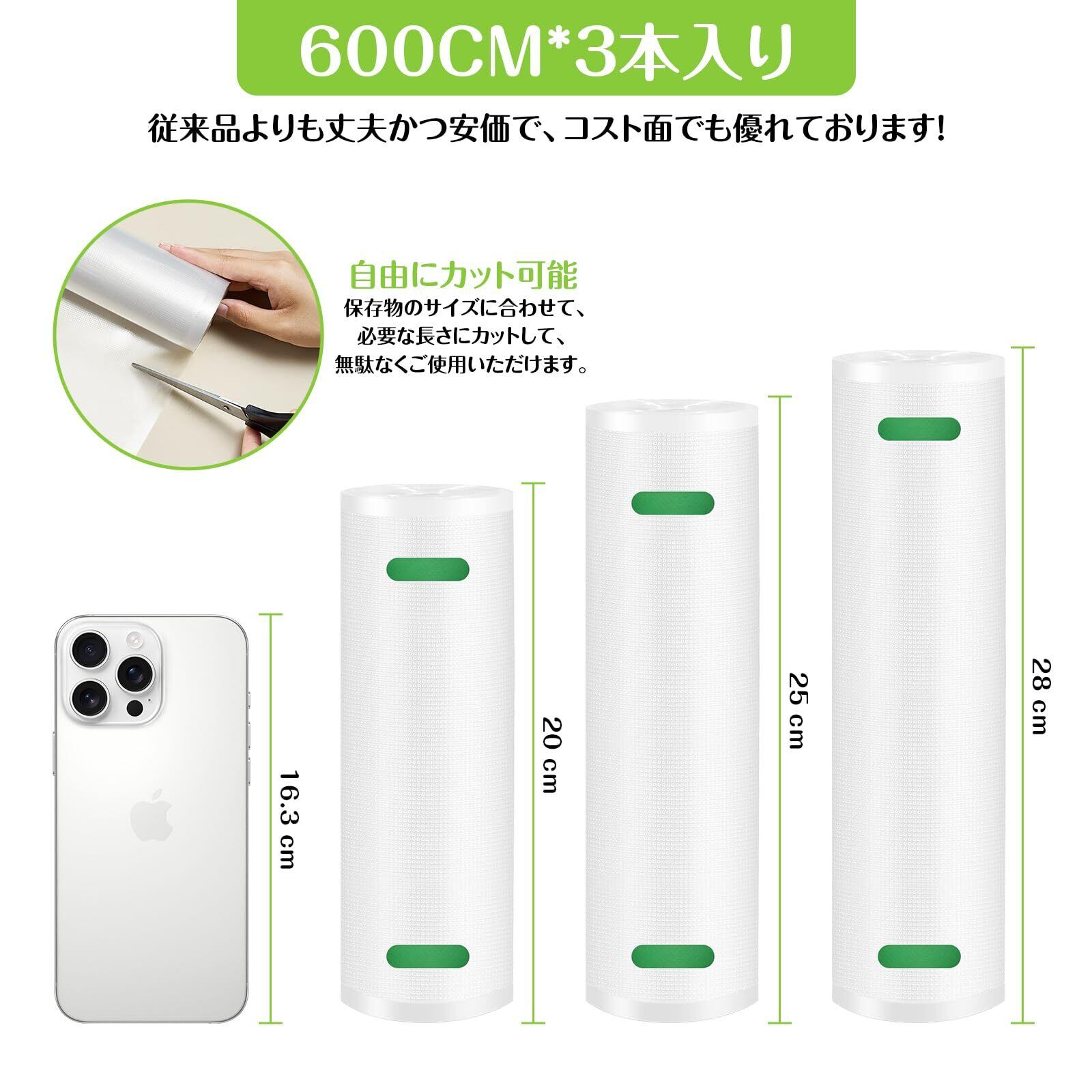 KEIUN 真空パック袋 真空パック ロール 20*600cm 25*600cm 28*600cm 3本セット - PA+PE安全素材 フードシーラー 真空パック機専用ロール 替えロール 真空ロール 自由にカット エンボス加工 専用抗菌袋 鮮度長持ち 食品保存 冷凍保存 電子レンジ解凍 低温調理 家庭用 業務用