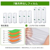 【安全無害な素材】食品接触レベルPE+PA素材採用を採用します。食品レベル、高密度のポリエチレン+ポリアミド樹脂採用で、より安心安全です。本商品は食品衛生法に基づく食品等の検査を実施し、厳しい国内基準をクリアした商品なので安心して使用できます。※食品を保存する場合は、真空パックして冷蔵庫や冷凍室で保存してください。殺菌作用はありませんので、注意して保存してください。