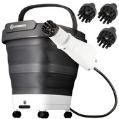 水道に接続せず、自吸式設計が採用されています。バケツや川からの吸水ができ、アウトドアでも安心してお使いになれます。これにより、使用場面が広がり、様々なお掃除需要に応える一台となっています。