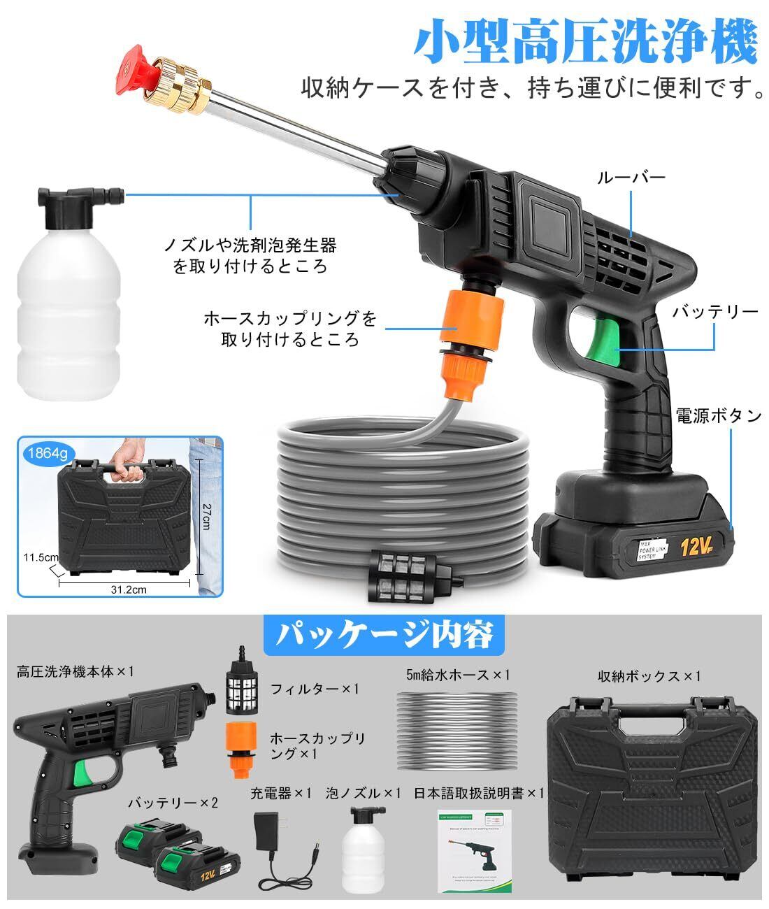 GOWTHHRT 高圧洗浄機 コードレス 水圧洗浄機 ワイヤレス洗車機 10000mAhバッテリー2個 洗車機 高圧 洗浄機 充電式 自吸式 掃除用品 リチウム電池 強力噴射 ポータブル 軽量 大容量バッテリー キャンプ用品 家庭用 洗車 庭 屋外 階段 外壁 ベランダ 37.5*20.5cm 持ち運び便利