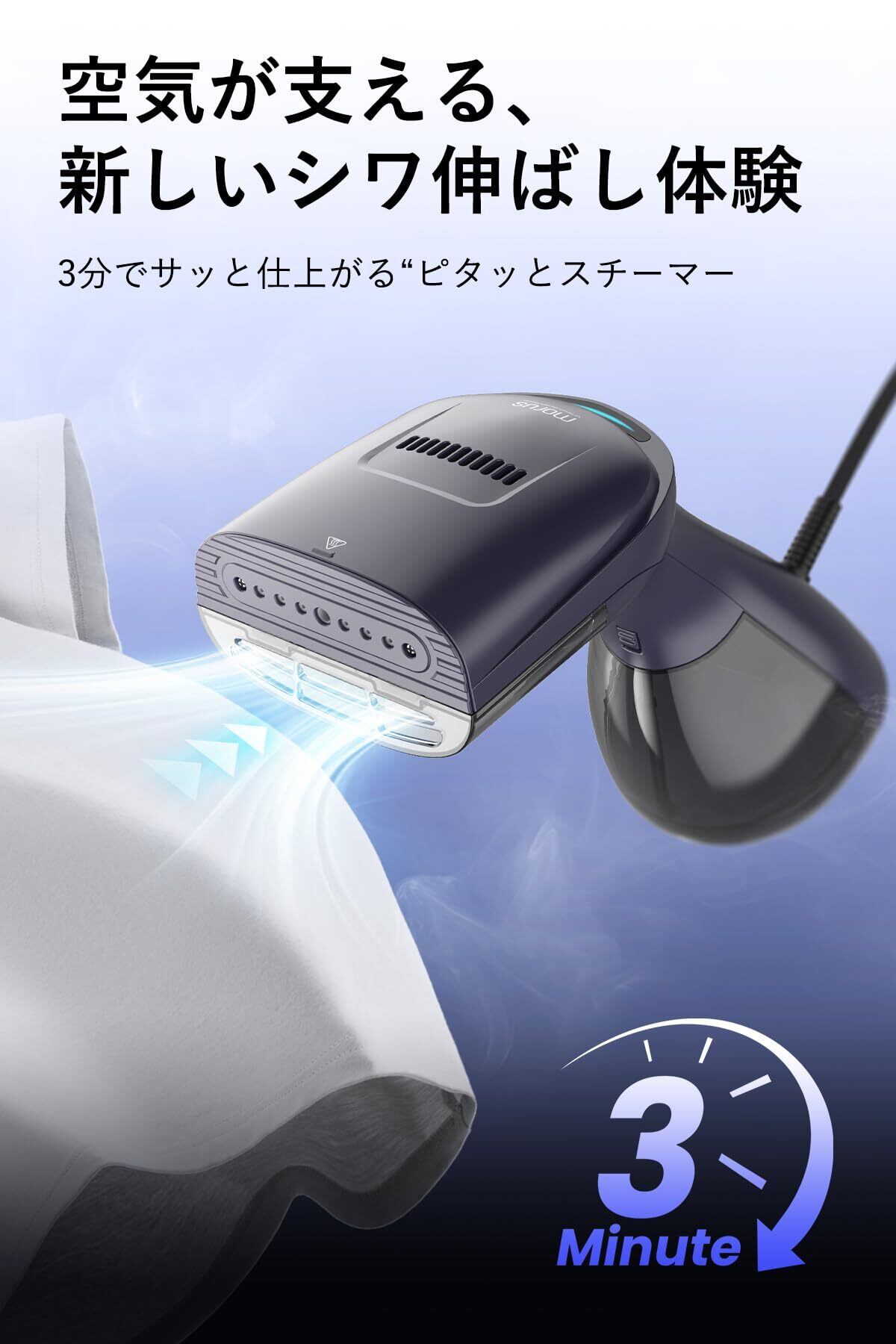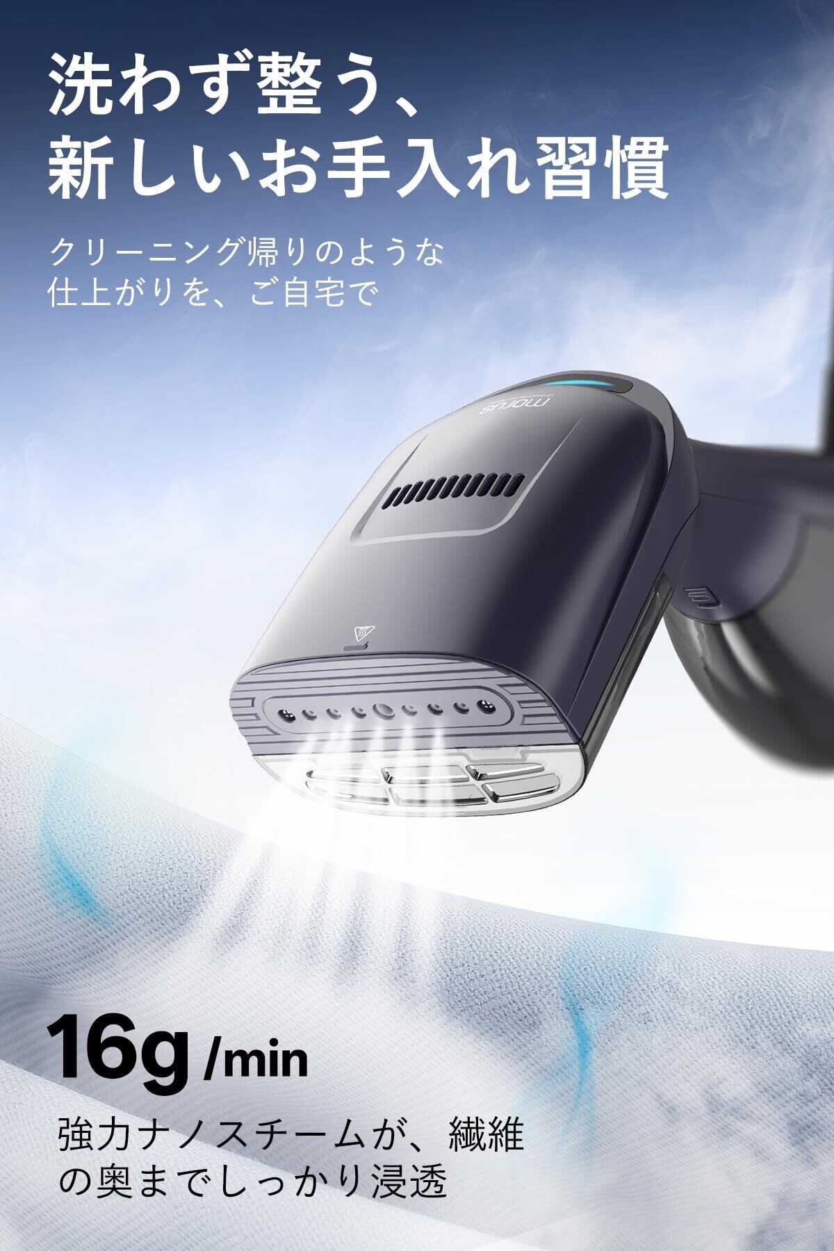 吸着式衣類スチーマー「Morus V3」 PSE 認証済み 真空吸着式スチームアイロン 香り付け機能 時短ケア ピタッとシワ伸ばし 除菌・脱臭・花粉ケア対応 350ml 大容量タンク 自立式設計 アイロン台不要 片手操作 (アッシュネイビー)