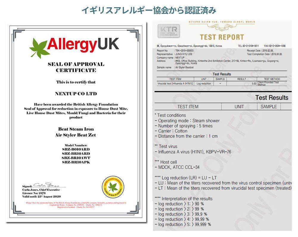 「スタイリングスチームアイロン」でハンガーにかけたまま衣類の除菌、消臭、さらにシワ伸ばしまで簡単に。1回のスチームで90%除去、5回のスチームで99.999%除去。世界的な認証機関であるAllergyUKから認証された商品。