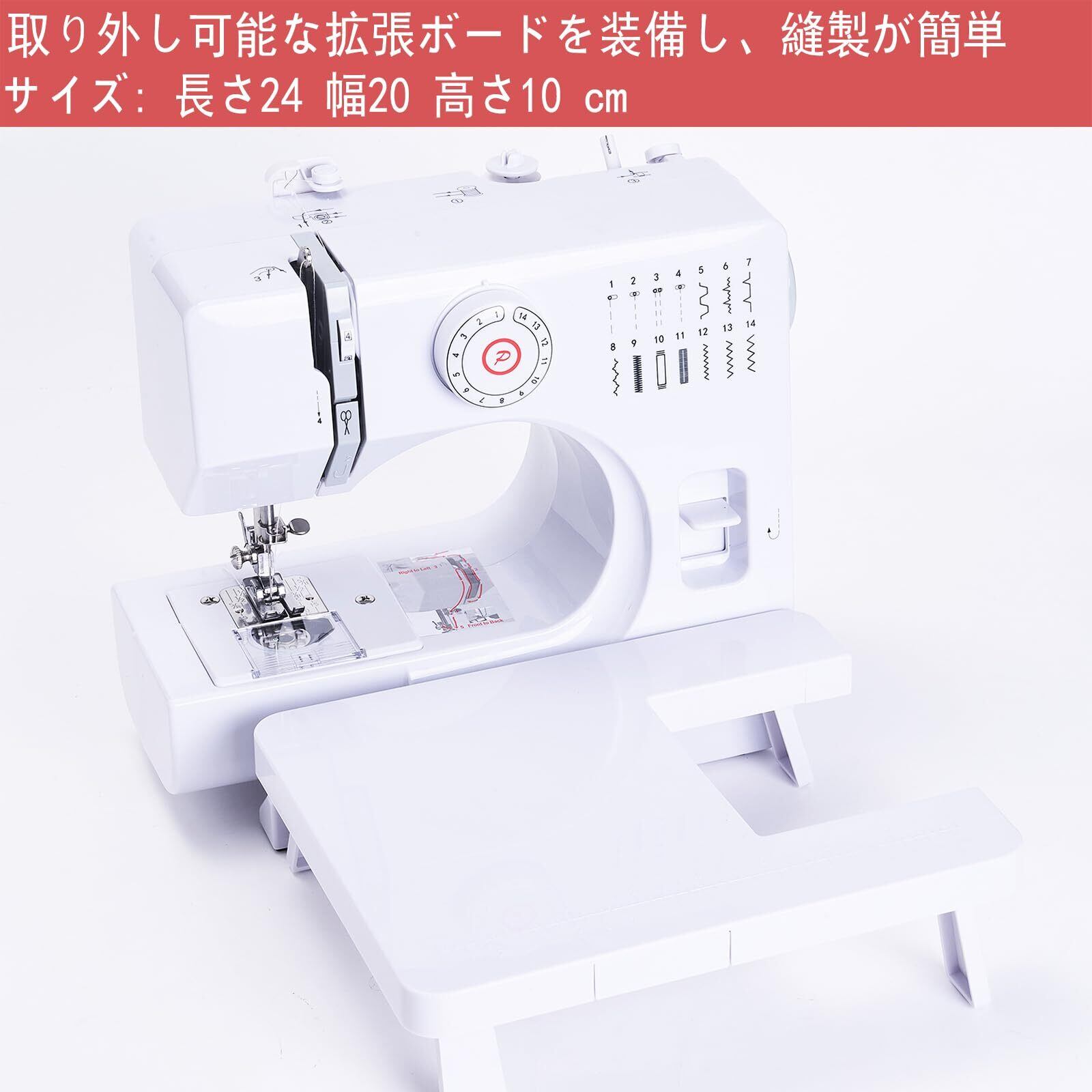 電動ミシン コンパクト家庭用ミシンセット 初心者 14種の縫い目 小型 ミニ ポータブル 低騒音 返し縫い フットコントローラー スピード可調整 拡張ボード 収納袋 DIYコットン柄の織物7枚 12色ミシン糸 日本語取扱説明書付き