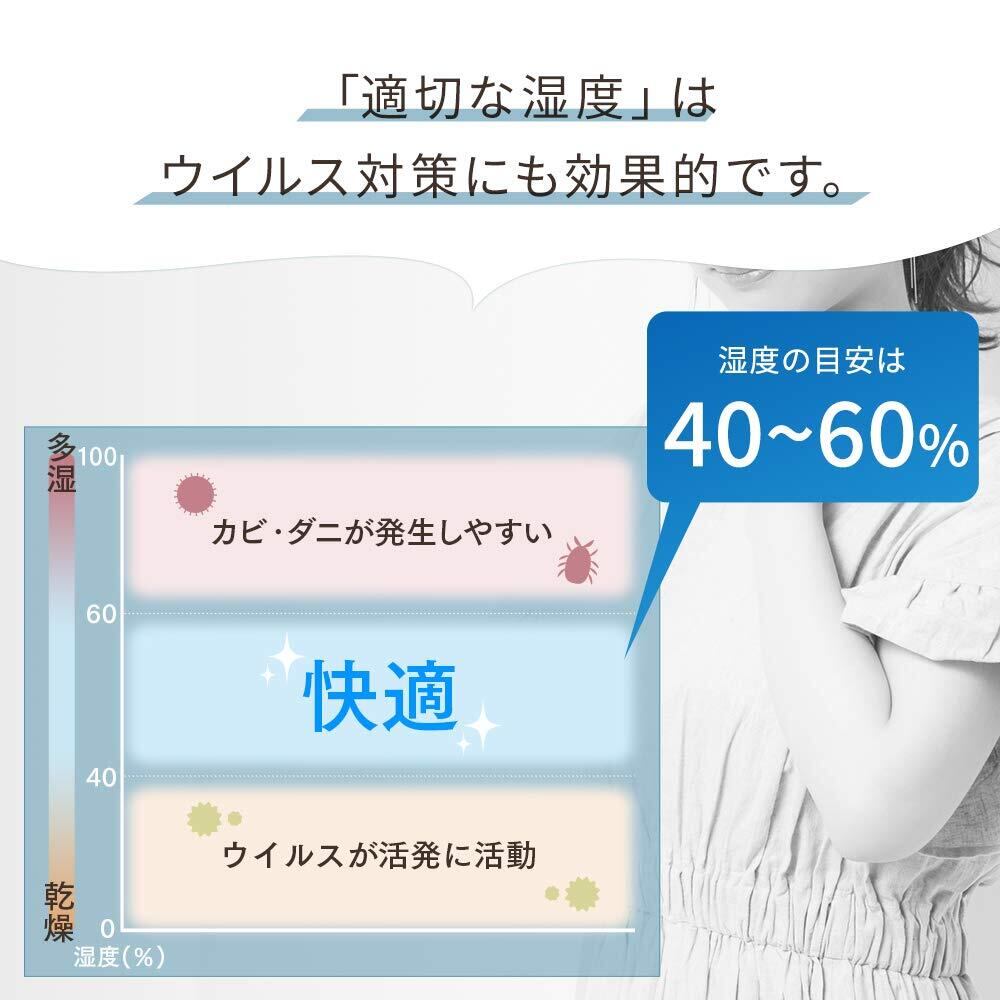 スチーム式と気化式の二つの技術を組み合わせたこの加湿器は、瞬時に温かいミストを放出し、室内の湿度を素早く上昇させます。清潔な加湿が実現できるため、特に小さなお子様やアレルギーをお持ちの方にもおすすめです。