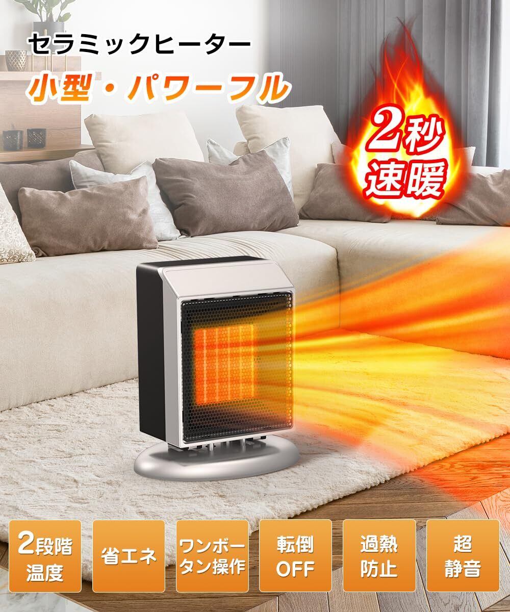 セラミックヒーター 【2025新モデル・節電対策・2秒速暖】 ヒーター 小型 温風 400W/900W 2段階温度調整 足元ヒーター デスク下 転倒OFF 過熱保護 暖房器具 省エネ 大風量 強力送風 即暖タイプ コンパクト オフィス 寝室 洗面所 脱衣所 トイレ 衣類乾燥