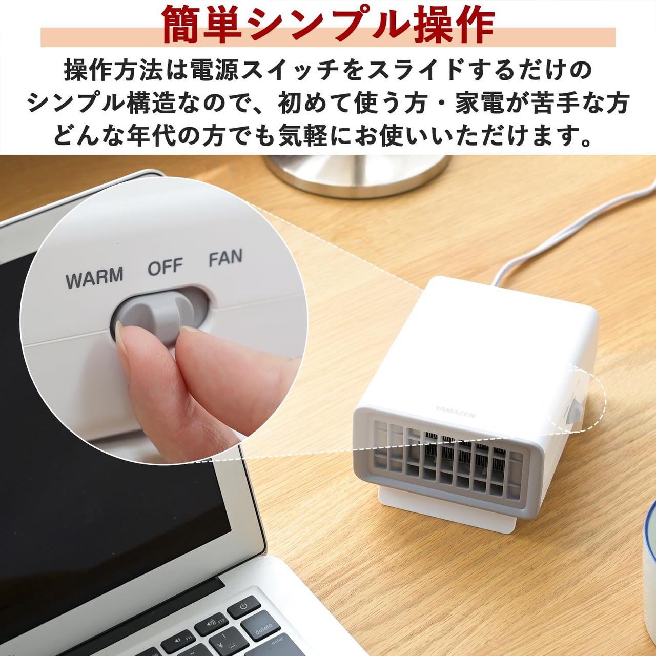[山善] ヒーター セラミックヒーター セラミックファンヒーター コンパクト 速暖 ミニ 手元 ヒーター 2WAY (温風/送風) 小型 デスクヒーター スタンド付き ホワイト DMF-D021(W)