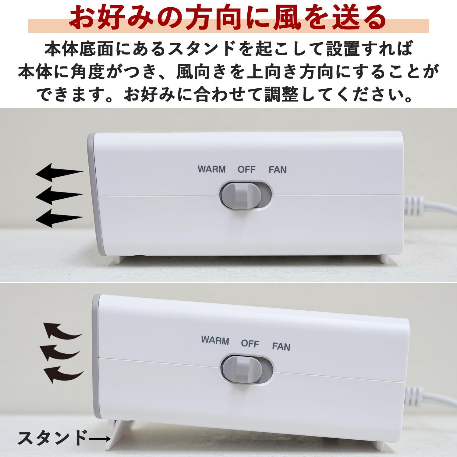 温風モードと送風モードを簡単に切り替え可能。寒い冬の日には温かい風で体を温め、暑い夏の日には涼しい風で快適さを保ちます。季節を問わず、室内環境を整える頼もしいアイテムです。