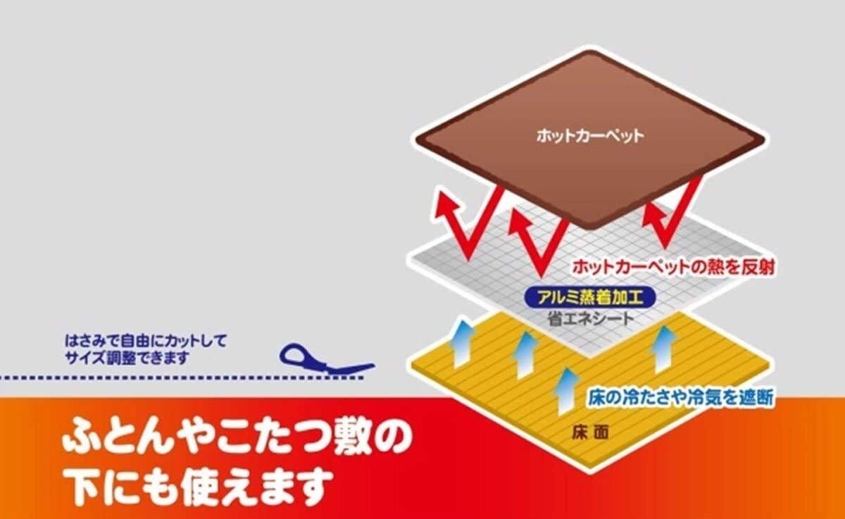 ホットカーペットの下に敷くことで熱を反射し、省エネになります。ハサミでカット可能なのでカーペットのサイズに合わせてお使いいただけます。