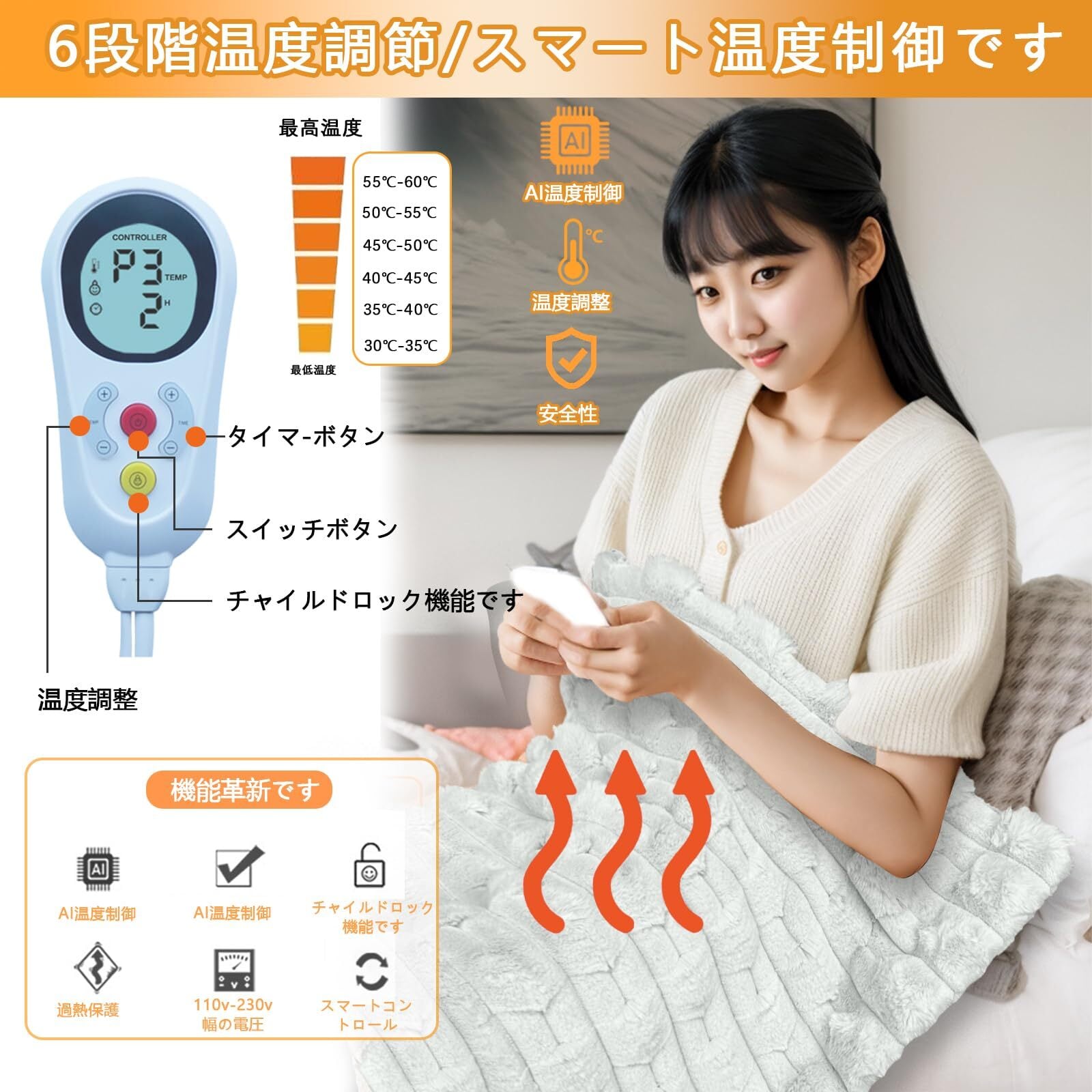 「6段階温度調節で自在な温もりを実現!」