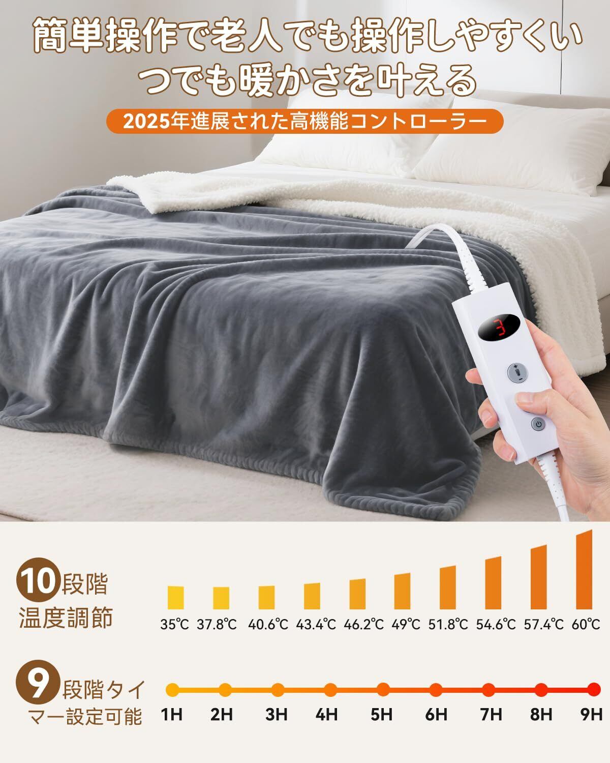 GOHHME 電気毛布 敷き 掛け200×140cm 電気膝掛け【ダブルサイズ&2025進化した高性能コントロール& 掛け敷き兼用 】節電 10段階温度調節 9段階タイマー設定 電気ブランケット ふわふわ 丸洗い可 5分速暖 膝掛け肩かけ 毛玉なし 過熱保護 防寒対策 抗菌 防臭 ダニ退治 冷え予防 ギフト 暖房器具 PSE認証済み