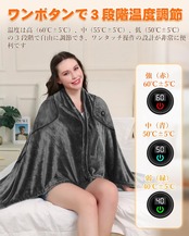 急速に温まり、すぐに快適な暖かさを実感できます。低・中・高の3段階から選べる温度調整により、外気温や体感に合わせて柔軟に対応。寒い日でも安心してお過ごしいただけます。