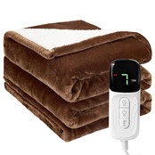 【新着商品】JUUE 電気毛布 掛け敷き兼用 160×130cm【7段階温度調整& 6段階タイマー】電気ブランケット 【フランネルとサンゴフリース 厚手生地】 3分速暖 恒温加熱 過熱保護 切り忘れ防止 省エネ 柔らか 丸洗い可 ダニ退治 抗菌防臭 防寒対策 暖房器具 肩掛け 膝掛け PSE認証済み(ブラウン)
