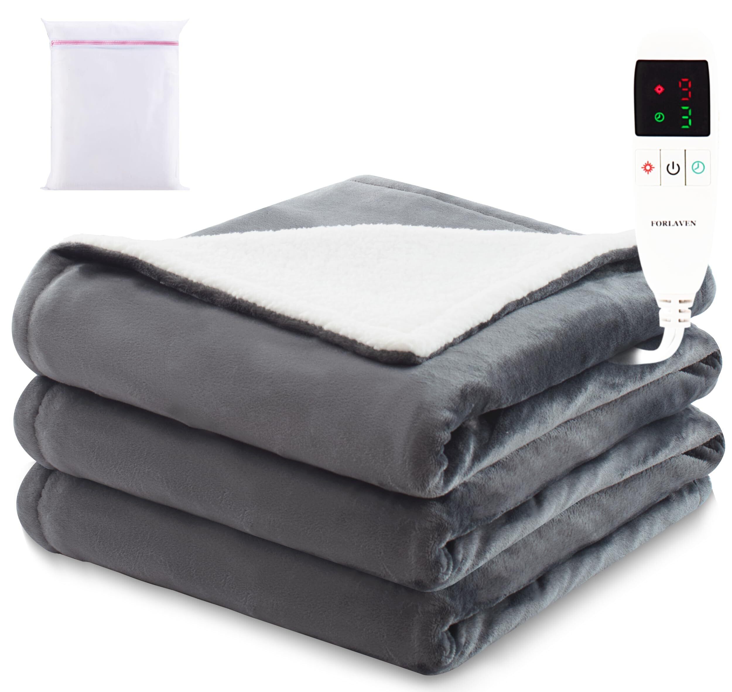 電気毛布 掛け敷兼用 洗える【大判 190×130cm】洗濯ネット付き 速暖 9段階温度調節 タイマー付き 節電 省エネ ダニ退治 防寒対策 丸洗いOK フランネル&シープボア 軽量 肩掛け 膝掛け シングル PSE認証済み (ダークグレー) Forlaven
