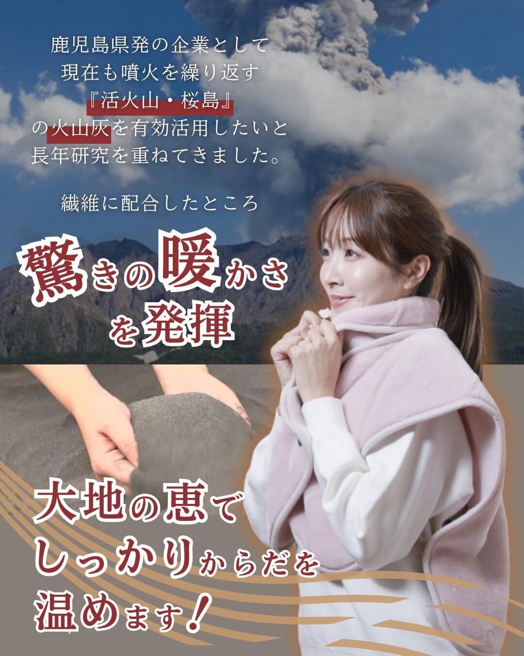 『[my makura] 吸湿発熱 マグマパワー 肩当て』は、鹿児島県桜島の火山灰を練りこんだ糸を使用した、あたたかさを追求したアイテムです。最大8.6℃の温度差を実現し、日常生活の中で冷えを感じたときに心強いサポートを提供します。デザインは男女兼用で、ユニバーサルなスタイルです。