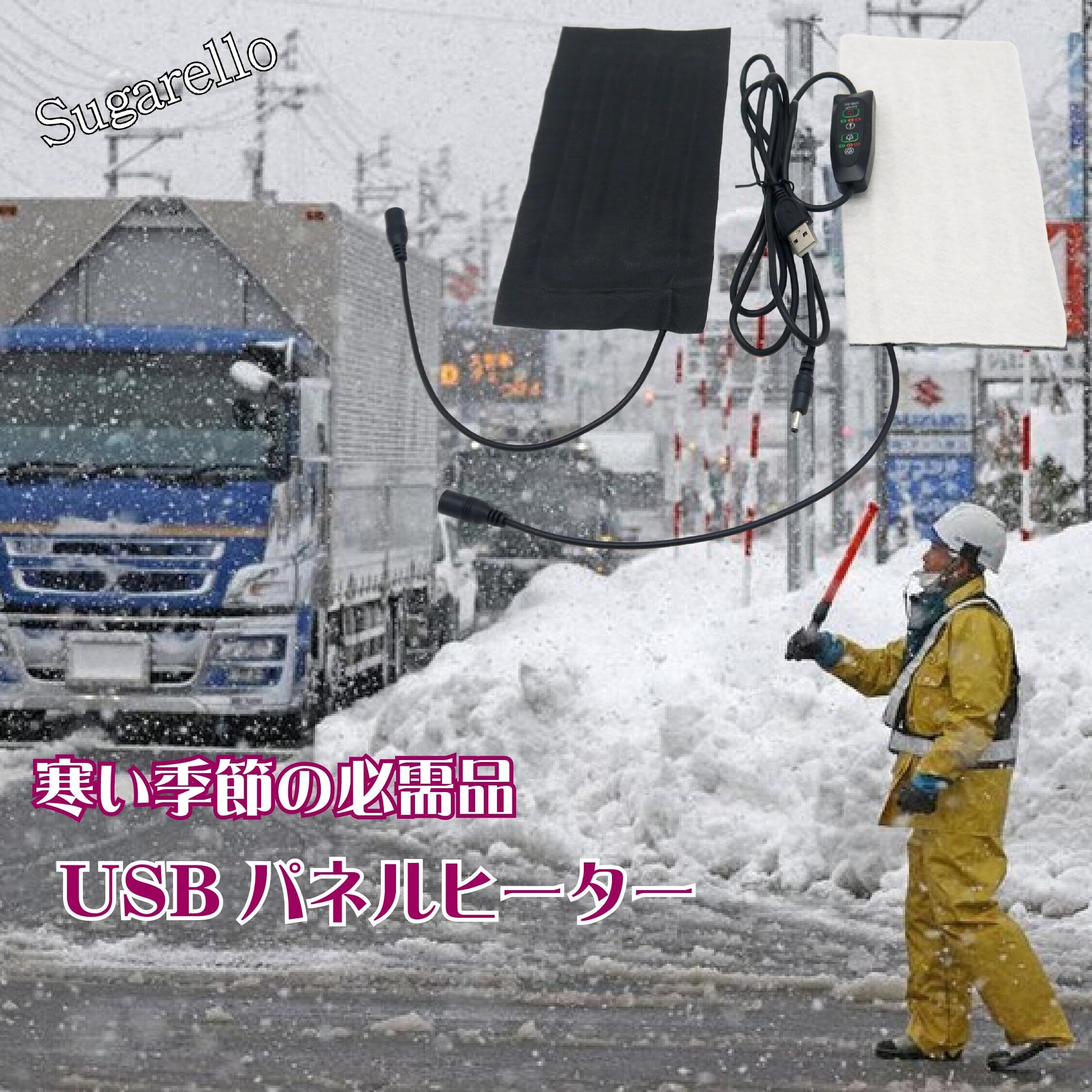 【在庫処分】Sugarello 電熱シート USBヒーターパッド 発熱シート ヒーターパッド USB DC5V カイロ 3段階温度調整 過熱保護 タイマー機能 5V/2A 炭素繊維+不織布 ブラック(2セット)