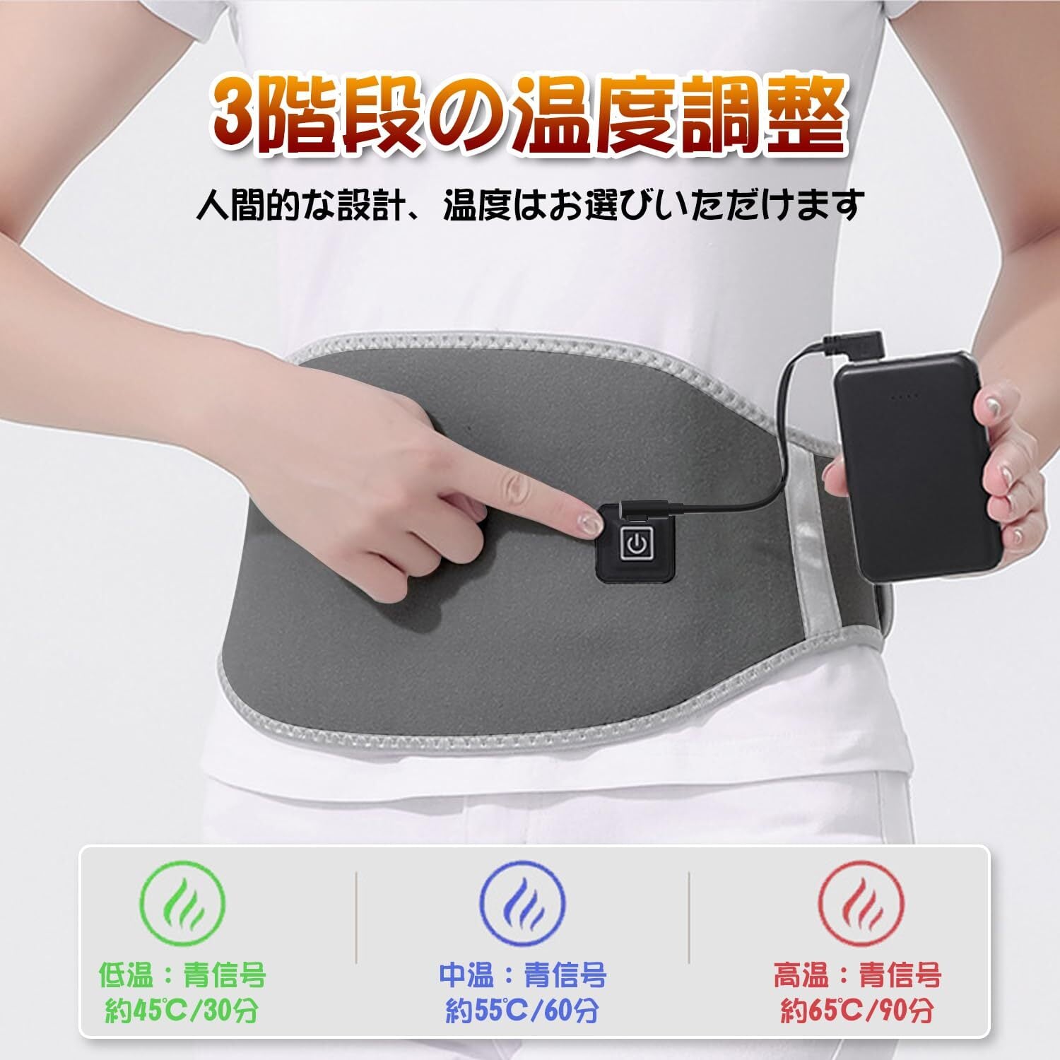 「65℃・55℃・45℃&USB給電」 PENIOR 電熱腰ベルト 電気腰パッド 腰ホットベルト 腰サポーター 遠赤外線加熱 腰用ヒーター 電熱腹巻き 60分分オートオフ機能 薄型 自宅 オフィス 月経 お腹 腰 男女兼用 フリーサイズ