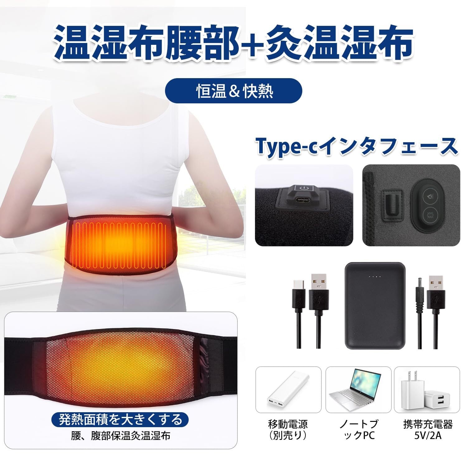 電熱効果で素早く温まるこの腰ベルトは、USB給電に対応していますので、手軽に充電可能です。わずか数秒で心地よい温もりを体感できるため、寒い日もストレスなく快適に過ごせます。