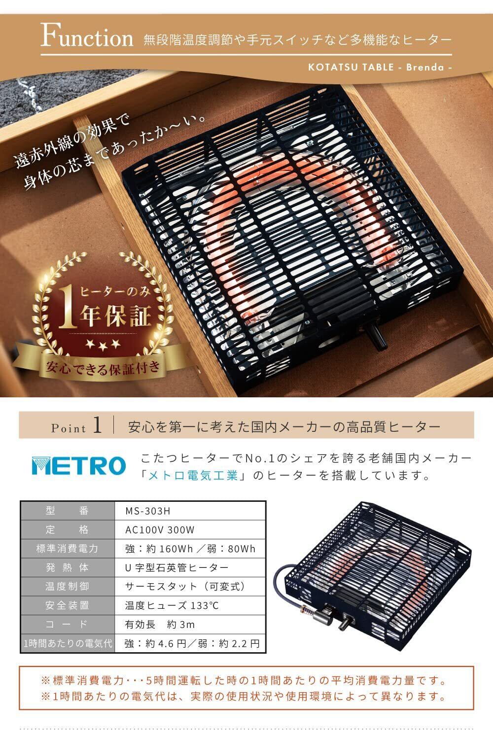 材質:繊維板/天然木(ラバーウッド)/ウレタン塗装/石英管ファンレスヒーター(MS-303H)/中間スイッチ