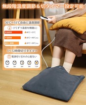 特徴 1-12時間切りタイマー機能, 30℃~55℃無段階温度調節可能、省エネ運転, 両面発熱、足全体が暖かい, 厚手強化、強い保温性, 過熱防止機能