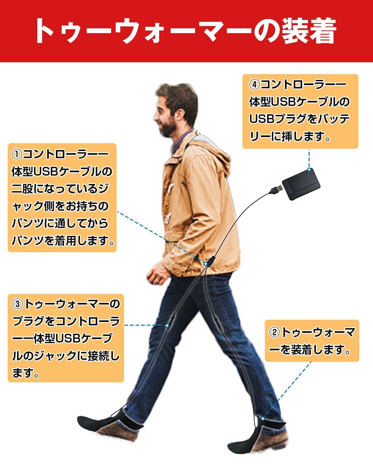 【パッケージ内容】トゥーウォーマー本体*2、コントローラー一体型USBケーブル*1、使用説明書*1。ご使用する前に必ず使用説明書をお読みください。使用中にご不明な点や品質上の問題があれば、いつでもご連絡ください。