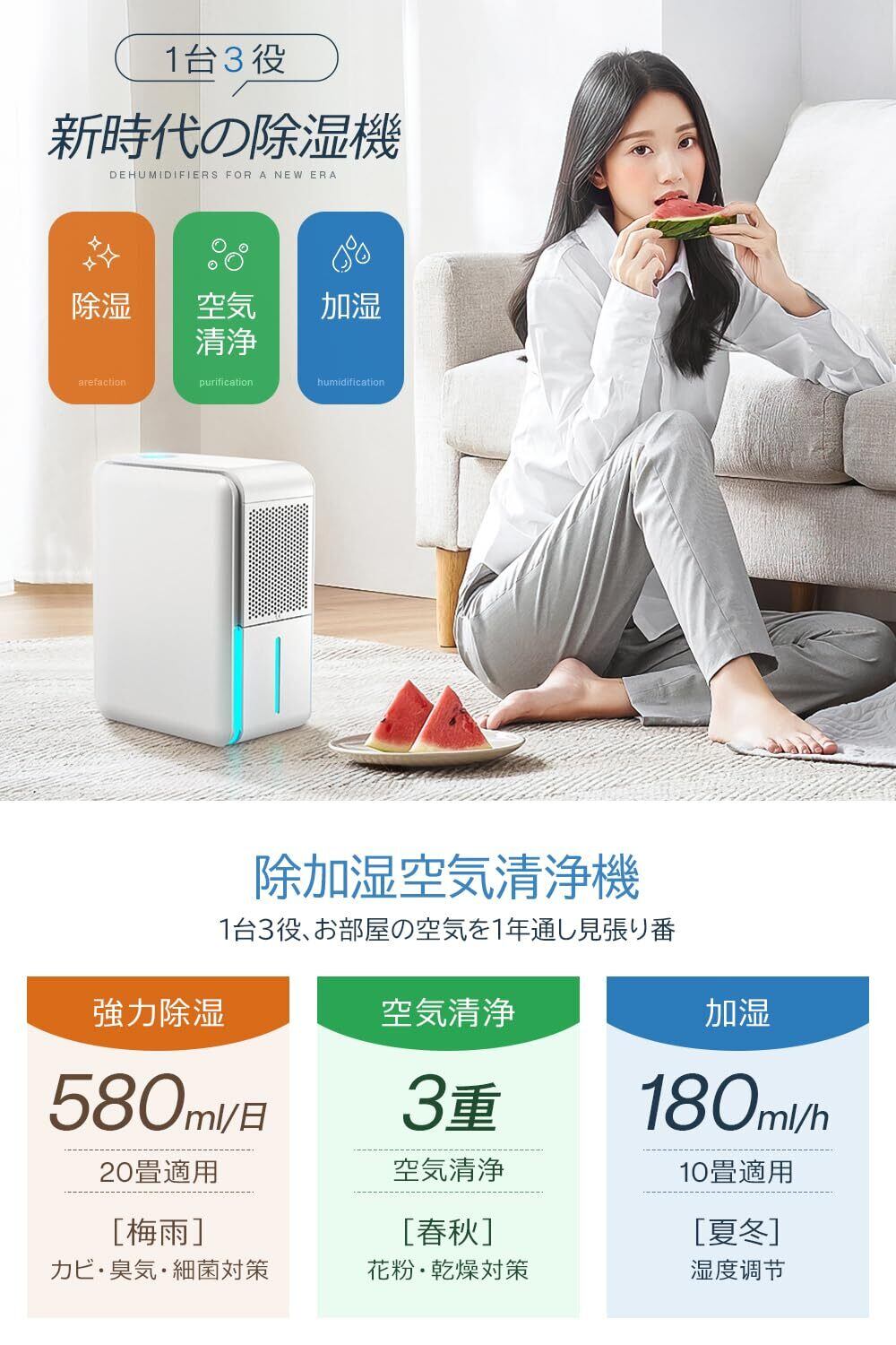 「湿気対策の決定版、この除湿機で快適で健康な生活をサポートします!除湿、加湿、空気清浄の3つの機能が一体化したこの製品が、あなたの部屋をより快適に保ちます!」