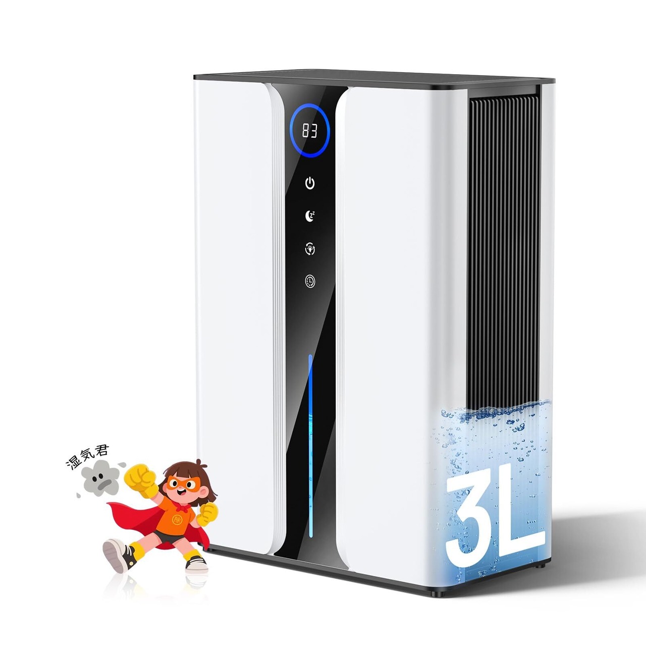「快適な空間作りはこれ一本で!除湿機で湿気をスッキリ解消しましょう!大容量3Lタンクと強力な除湿機能が、あなたの生活をサポートします!」