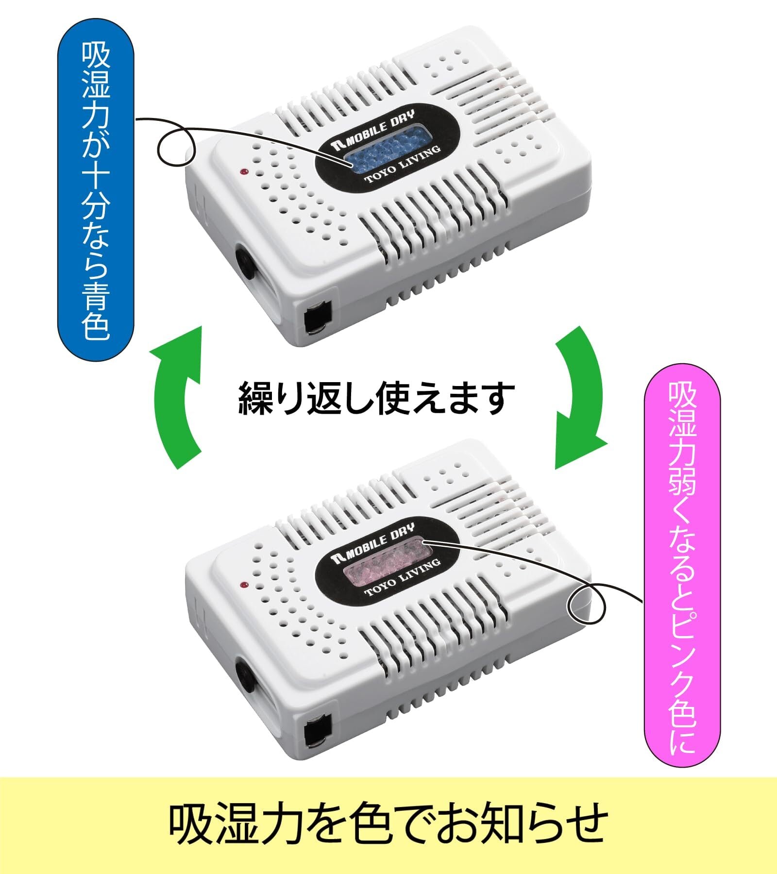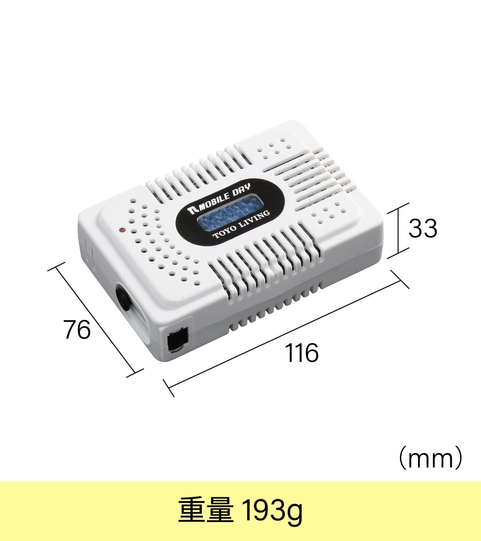この『モバイルドライ MD-3』は、コンパクトで持ち運びに便利。クローゼットや車内、靴箱など、湿気が気になる場所にぴったり!梅雨時期や湿度の高い季節に、あなたの生活空間を守ります。
