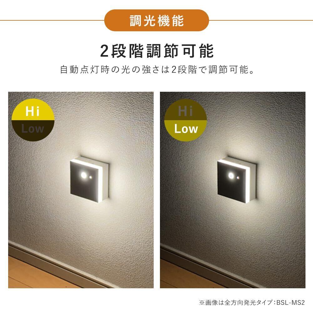 自動で点灯してやさしく照らす。乾電池式LEDセンサーライト[下方発光タイプ:BSL-MS1]下方向を優しく照らします。設置方法は、置き型でも壁付け型でもどちらでも対応できます。まぶしさを抑える“間接光設計”なため、優しい光です。おすすめ設置場所はトイレや廊下です。