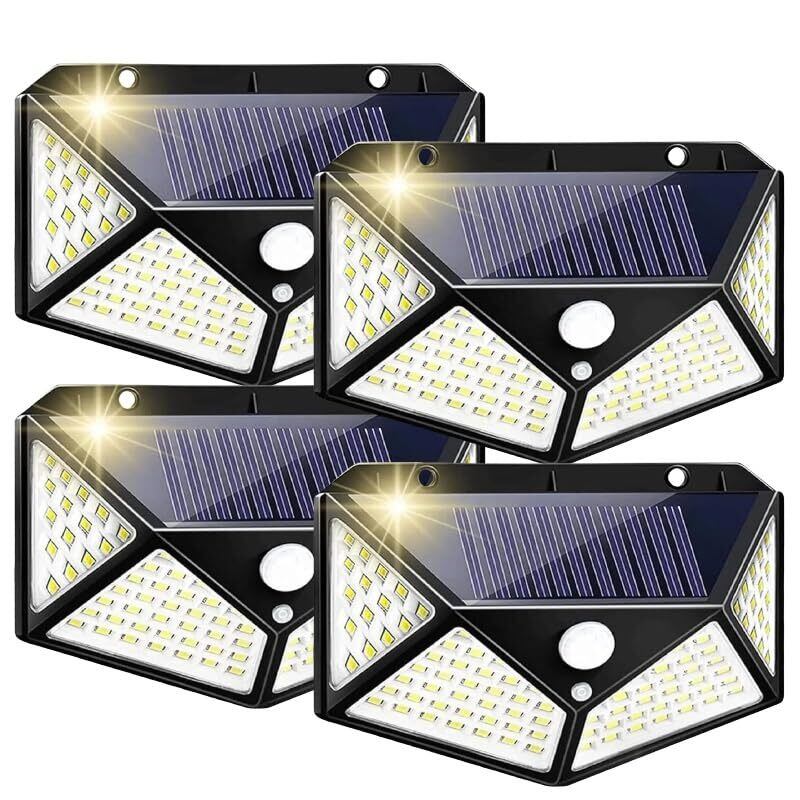 100LED ソーラーライトソーラーライト屋外 ガーデンライト 4面発光 3つ知能モード IP65 防水 ソーラーセンサーライト 100LED 人感センサーライト 電池交換不要 自動点灯 屋外/玄関/廊下/駐車場/庭先/停電時適用 (6個)