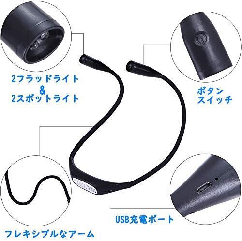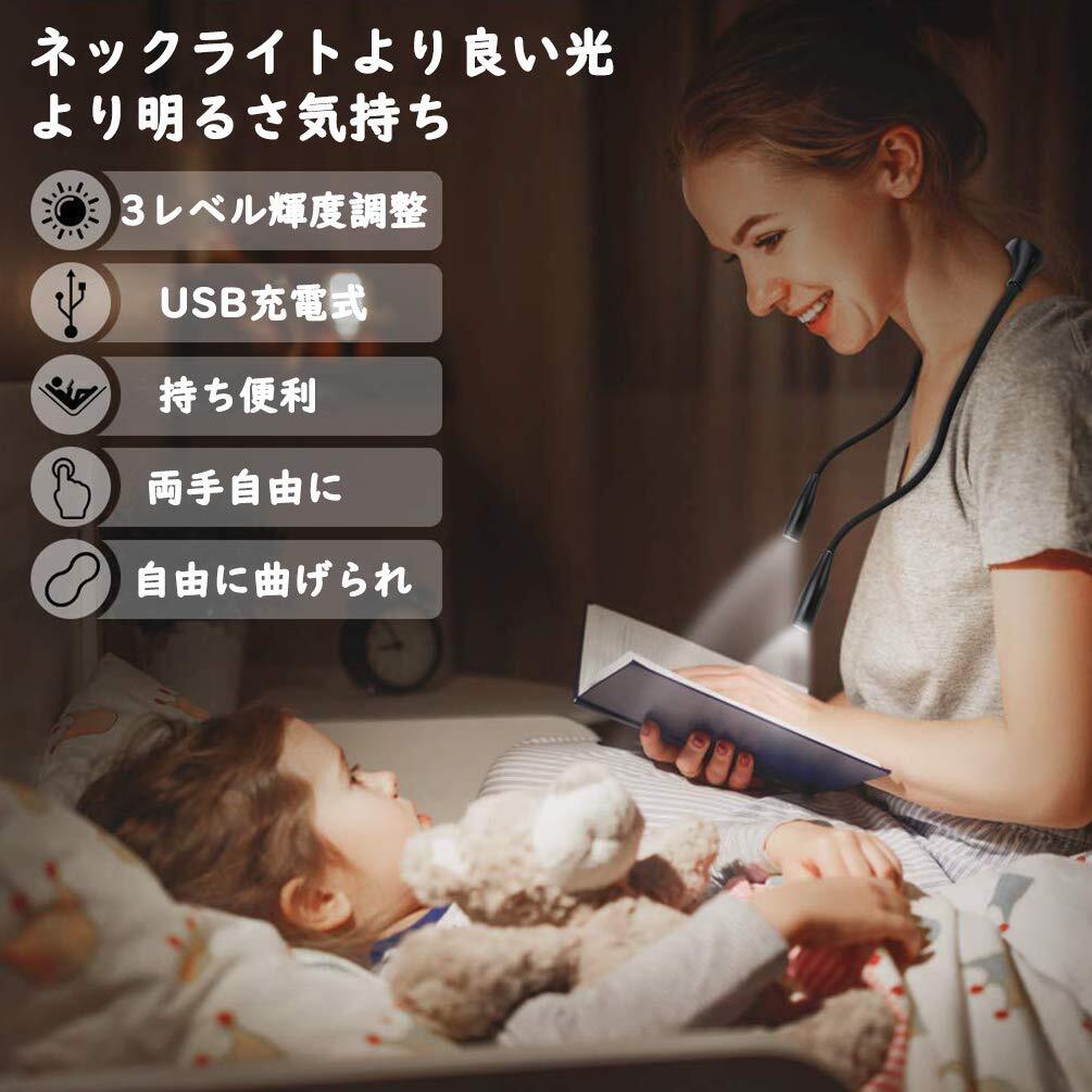LEDGLE ネックライト ledブックライト ウォーキングライト 0.4W 3レベル輝度調整 首掛け 角度調節可 夜間読書ライト 充電式 地震緊急用 (ブラック)