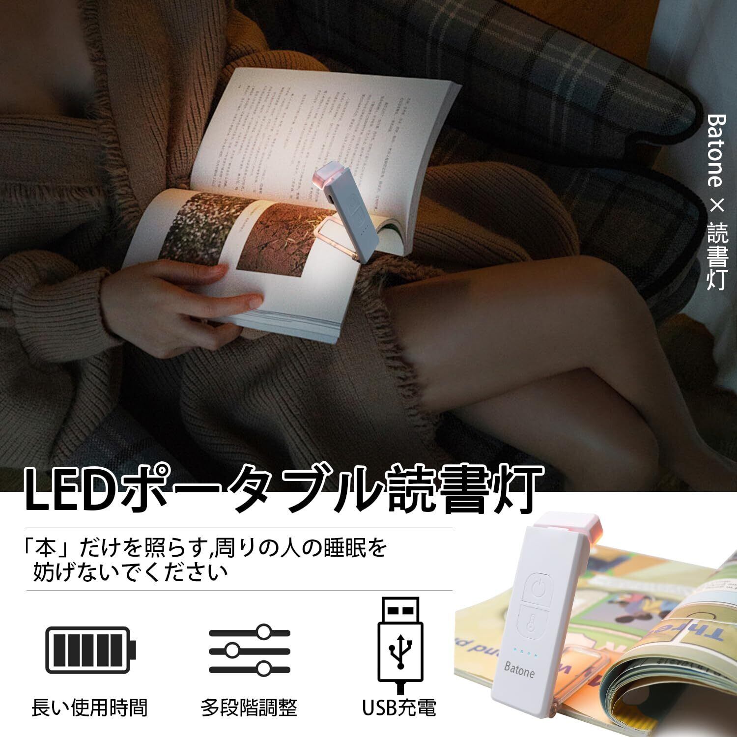 Batone 読書灯 ブックライト充電式 ポータブル クリップオンLEDリーディングライト4つの色温度と無段階調光可能 小型で耐久性があり 本の愛好家 子供に最適(ホワイト)