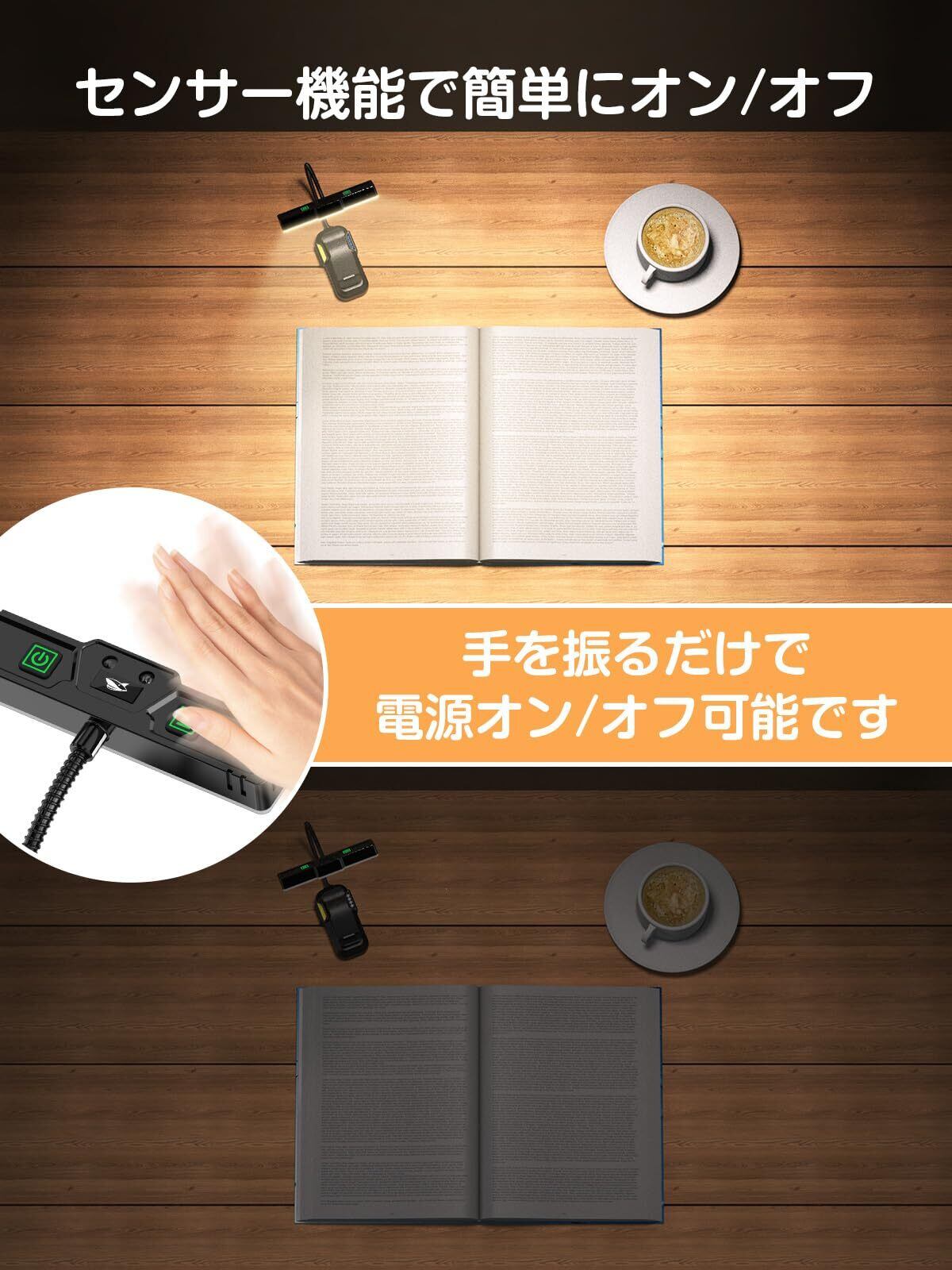 Smiling Shark 読書灯,【センサー機能・超長使用時間】ブックライト 3段階調色 6段階調光 読書用 大容量1200Ahバッテリー 連続使用可能 センサー機能 目に優しい 360°調整可能 軽量 USB充電式 残量表示 クリップライト 手元ライト ベッドライト 仕事 勉強 読書 停電用 日本語取扱説明書