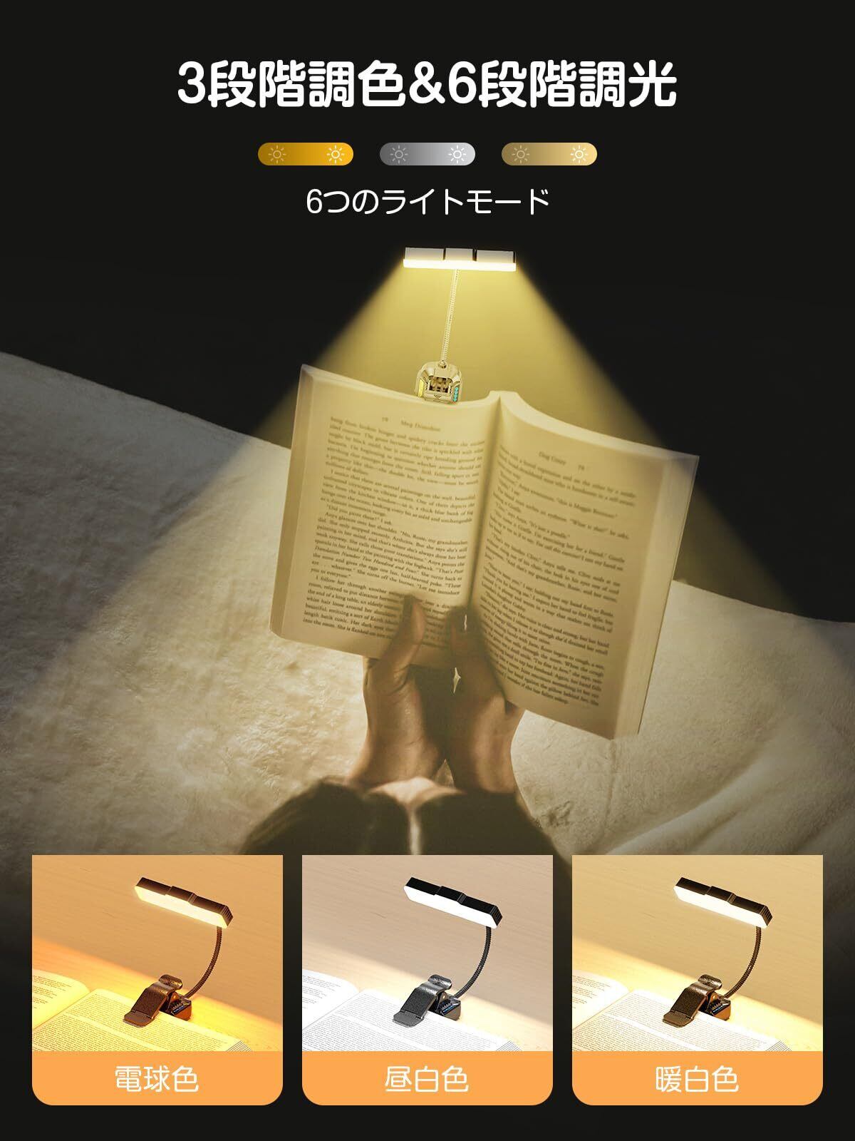 【柔らかい光・目に優しい】読書灯には夜間に適する光源をご提供いたします。電源ボタンを押すと、電球色、昼白色、暖白色の3種類のライトが切り替えられます。また、6段階調光機能も付いており、お好みに合わせて自由にライトを調整できます。