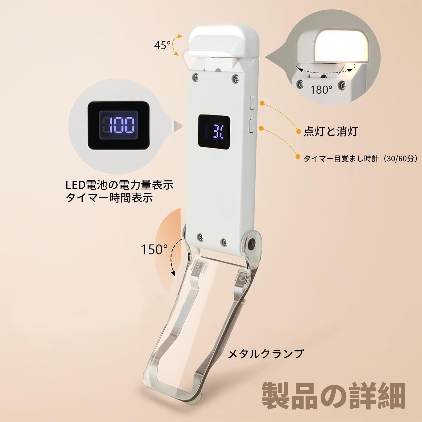 【3色切替・5段階調光】この読書ライトは、電球色・温白色・昼光色の3つの色温度から選べ、5段階の明るさ調整で最適な光を実現。シーンに応じて、明るさと色温度をお好みに合わせて設定できます。5個のLEDビーズで均一な光を提供。十分な明るさで周囲を気にせず、快適な読書体験が楽しめます。