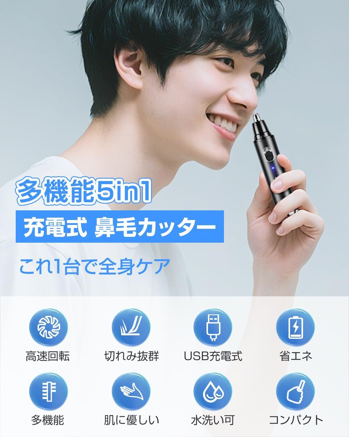 この鼻毛カッターは、男女問わず使用できる多機能なエチケットカッターです。1台で鼻毛、耳毛、眉毛を手軽にお手入れできるため、自宅でも外出先でも安心して使えます。デザインはコンパクトで軽量、持ち運びにも便利なので、出張や旅行にも最適です。