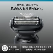 ■人工知能テクノロジー:髭の濃さを読み取り毎秒13回自動でパワーを調節し、ヒゲの濃い箇所でもパワーを落とさず最適なシェービングが可能に。
